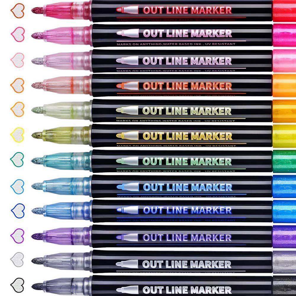 Markery konturowe to coś w sam raz dla tych, którzy lubią ozdabiać notatki w swoich szkolnych zeszytach lub miłośników estetycznych pamiętników. Zestaw zawiera 12 markerów w różnych kolorach i może być używany do pisania na ciemnych powierzchniach. Podkreślaj nagłówki, podkreślaj tekst lub rysuj z niezwykłym blaskiem - użyj swojej wyobraźni i bądź kreatywny!