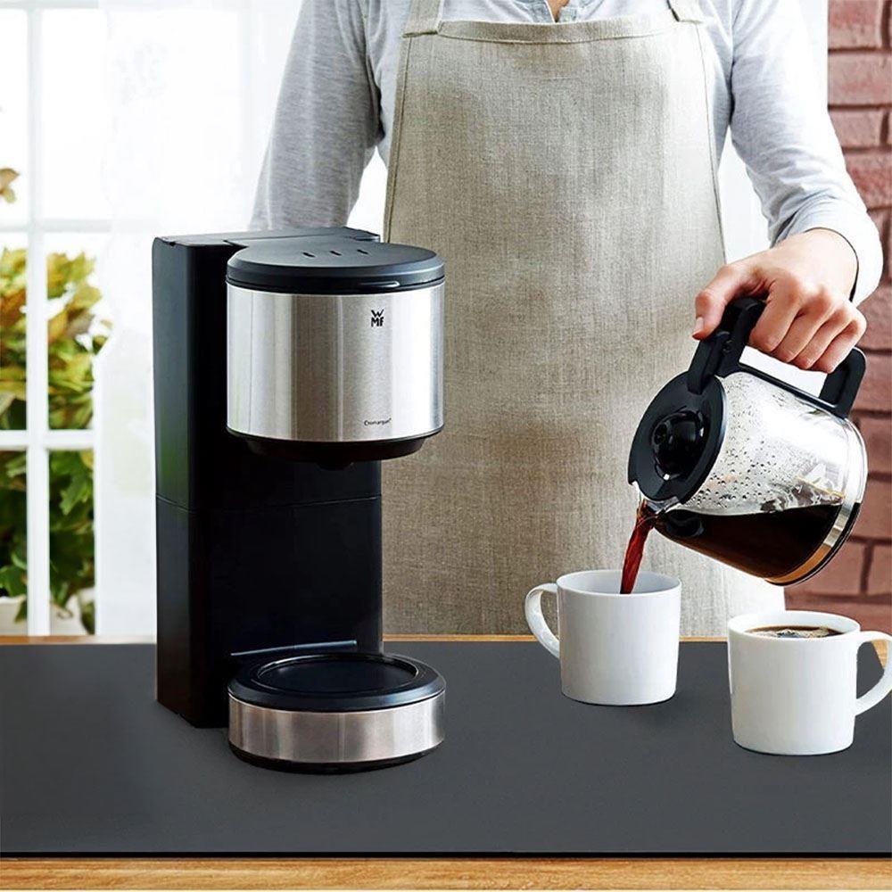 Antypoślizgowa mata pod ekspres do kawy łączy praktyczność z estetycznym designem. Wykonana jest z kauczuku i poliestru, co zapewnia jej długą żywotność. Idealnie wchłania nieuniknione rozpryski, chroniąc blat kuchenny i utrzymując go zawsze czystym oraz suchym. Dzięki zdolności odprowadzania wody z umytych naczyń zapobiega powstawaniu pleśni i bakterii.