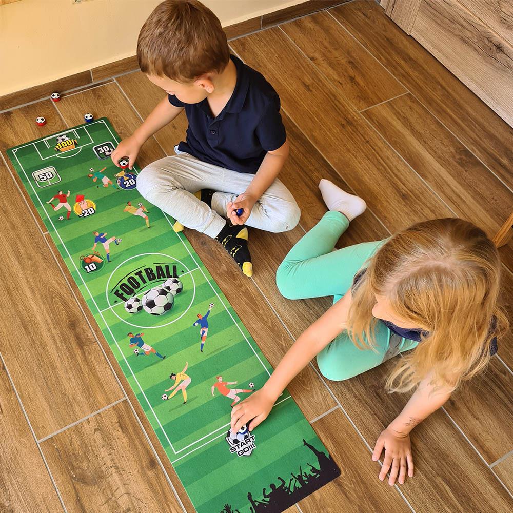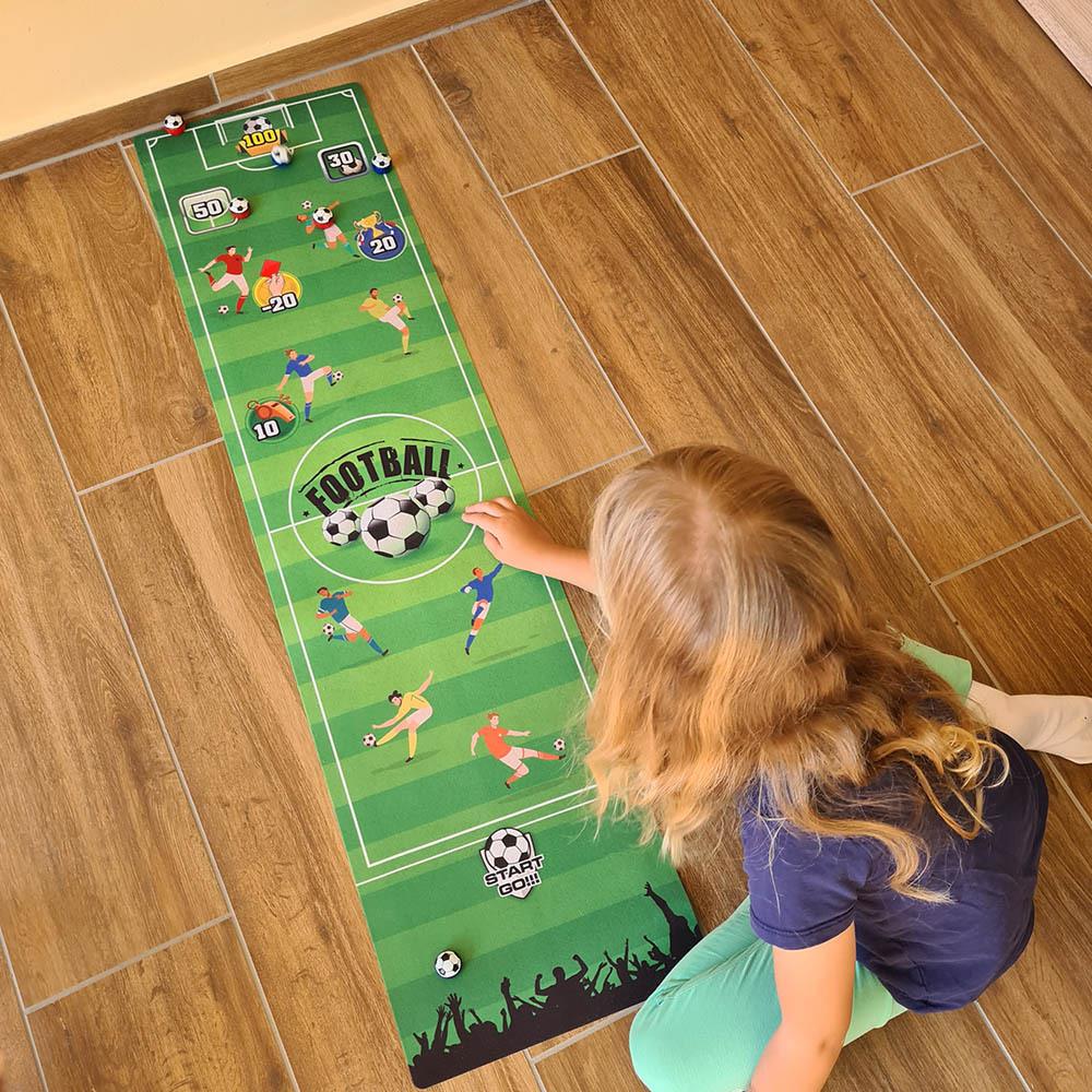 Ta mata do gry wprowadzi do każdego pokoju atmosferę adrenaliny. Dzieci mogą same lub z przyjaciółmi wypróbowywać celność strzałów, zbierać punkty i bawić się przy prostej, ale wciągającej grze. Wystarczy rozłożyć matę, przygotować „krążki” i celować w punktowane pola. Mata jest miękka, łatwa do złożenia i przenoszenia, więc można ją zabrać w podróż, na wakacje lub w odwiedziny. Zagrajcie w grę podobną do curlingu na przyjęciu dla dzieci lub na obozie dziecięcym. Kto zdobędzie najwięcej punktów i będzie miał najlepsze "uderzenie do bramki"?