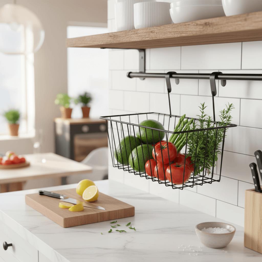 Potrzebujesz uporządkować kilka swoich rzeczy w kuchni lub łazience, ale brakuje Ci miejsca? Ten wiszący koszyk zawiesisz na drzwiczki szafki kuchennej lub innej szafki i możesz w nim przechowywać ściereczki, akcesoria kuchenne lub produkty kosmetyczne. Od teraz w Twoim pomieszczeniu nie musi już panować bałagan. Teraz czeka Cię tylko uporządkowana przestrzeń.