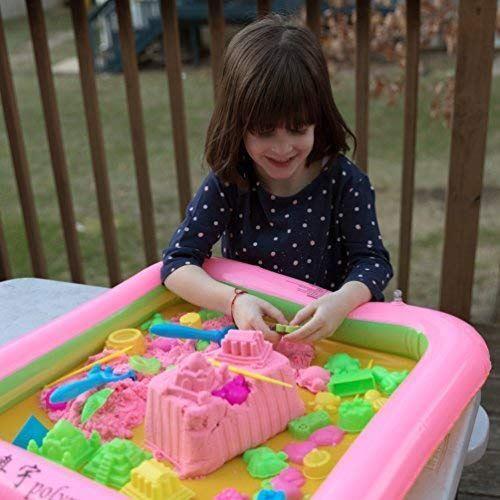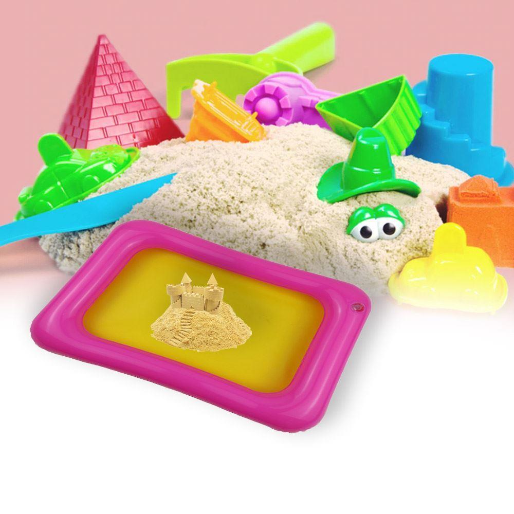 Masz już w domu modelującą masę piaskową? Foremki też? Jedyne, czego Ci brakuje, to miejsce, gdzie dzieci będą mogły się bawić piaskiem. Nadmuchiwana mata jest do tego stworzona. Jest wystarczająco duża, dzięki czemu piasek pozostaje w jednym miejscu wewnątrz, a nie rozchodzi się po całym pokoju.