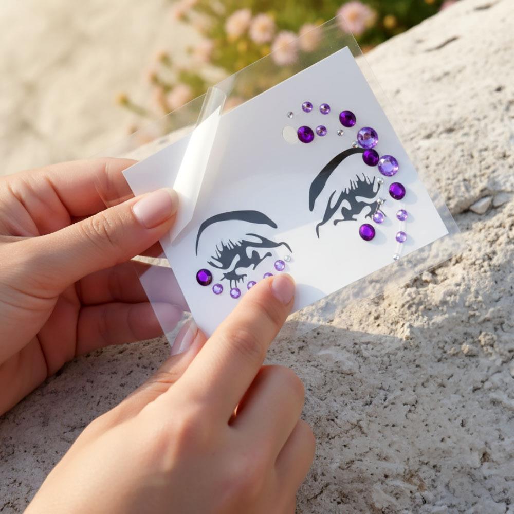 Z tymi kryształkami naprawdę zabłyśniesz! Uzupełnij swoją stylizację wyrazistym dodatkiem, który z pewnością przyciągnie uwagę. Kryształki możesz aplikować na twarz na różne okazje, takie jak imprezy, przyjęcia, festiwale, wieczory panieńskie, a nawet na co dzień. Aplikacja jest bardzo łatwa – odklej kryształki samoprzylepne z folii ochronnej i naklej je na wcześniej oczyszczoną, nieumalowaną i suchą skórę twarzy.
