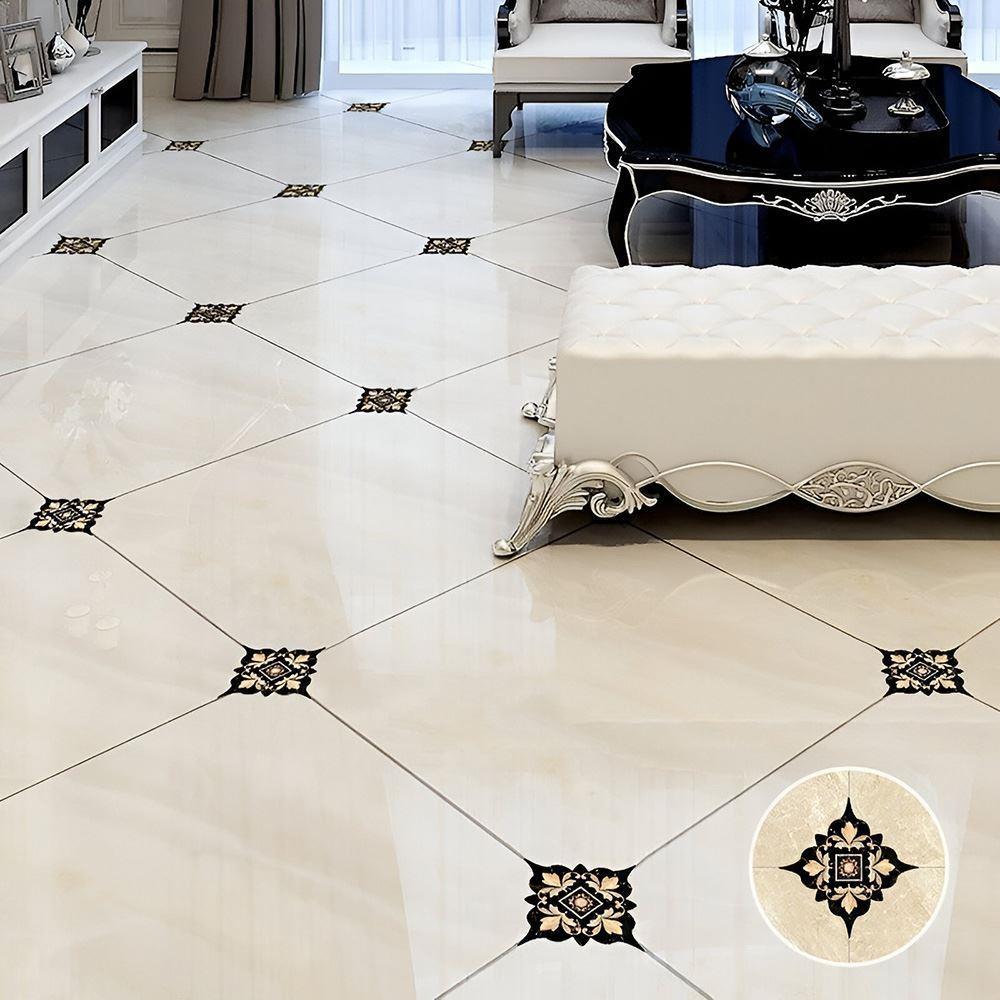 Ładny i stylowy design naklejek będzie pasował przede wszystkim do jasnych podłóg lub płytek. Jeśli jednak preferujesz mniej rzucające się w oczy dekoracje, przyklej efektowny czarny motyw z beżowymi detalami także na ciemnej powierzchni. Również tam doskonale spełni swoją funkcję ożywienia i ozdobienia wnętrza.