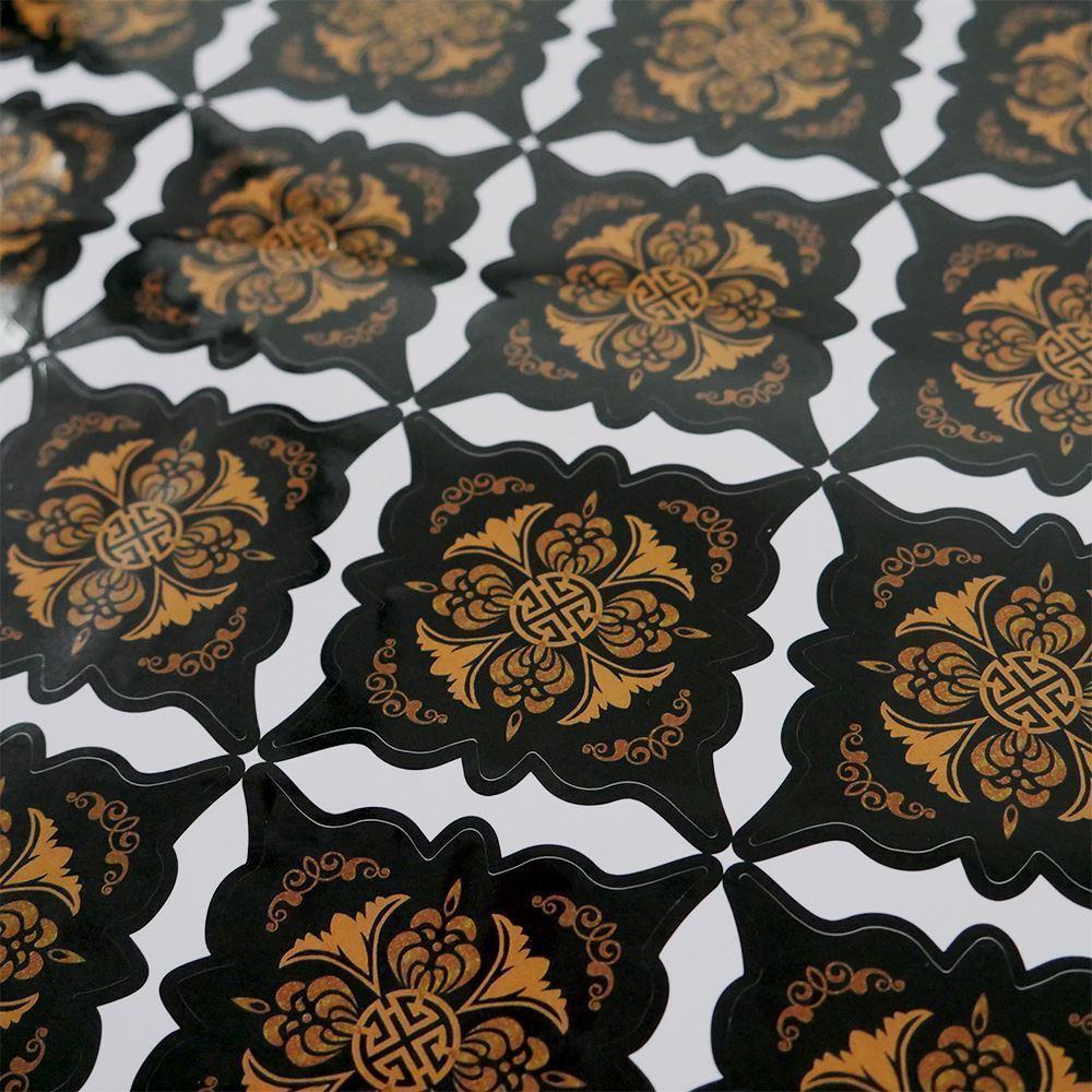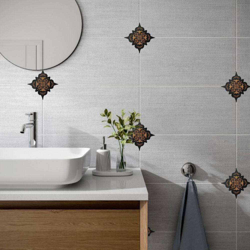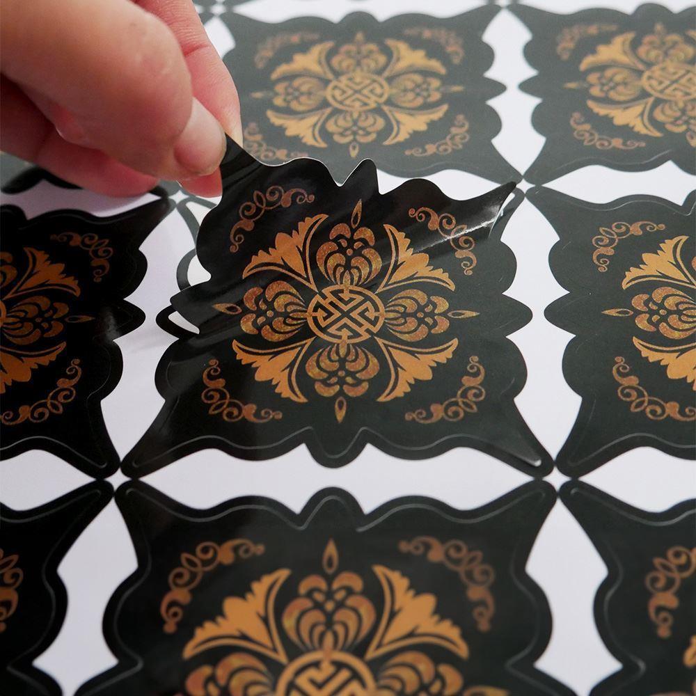 Ładny, stylowy design naklejek pasuje szczególnie do jasnych podłóg lub płytek. Jeśli jednak wolisz mniej rzucające się w oczy dekoracje, ten przyjemny czarny motyw z brązowymi detalami możesz przykleić także na ciemną powierzchnię. Także tutaj idealnie spełni rolę elementu ożywiającego i dekoracyjnego twojego wnętrza.