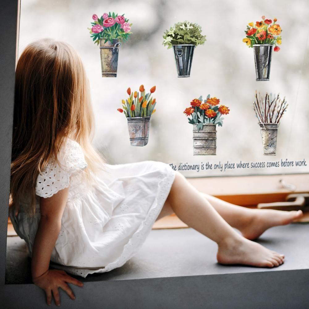 Pragniecie kwitnących skrzynek za oknem, ale wasze mieszkanie na to nie pozwala? Nie szkodzi! Pozwólcie swojemu domowi zakwitnąć w inny sposób. Naklejkę z motywem pięknych doniczek z kwiatami przykleicie na ścianę i okno. Przyjemna dekoracja stylowo dopełni wasze wnętrze.