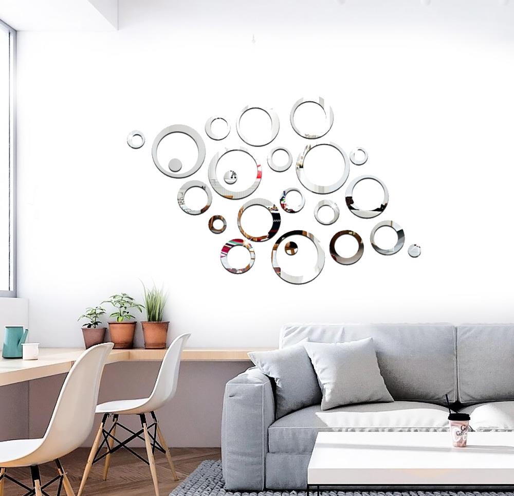 • Samoprzylepne naklejki ścienne w kształcie lustrzanych kółek/okręgów