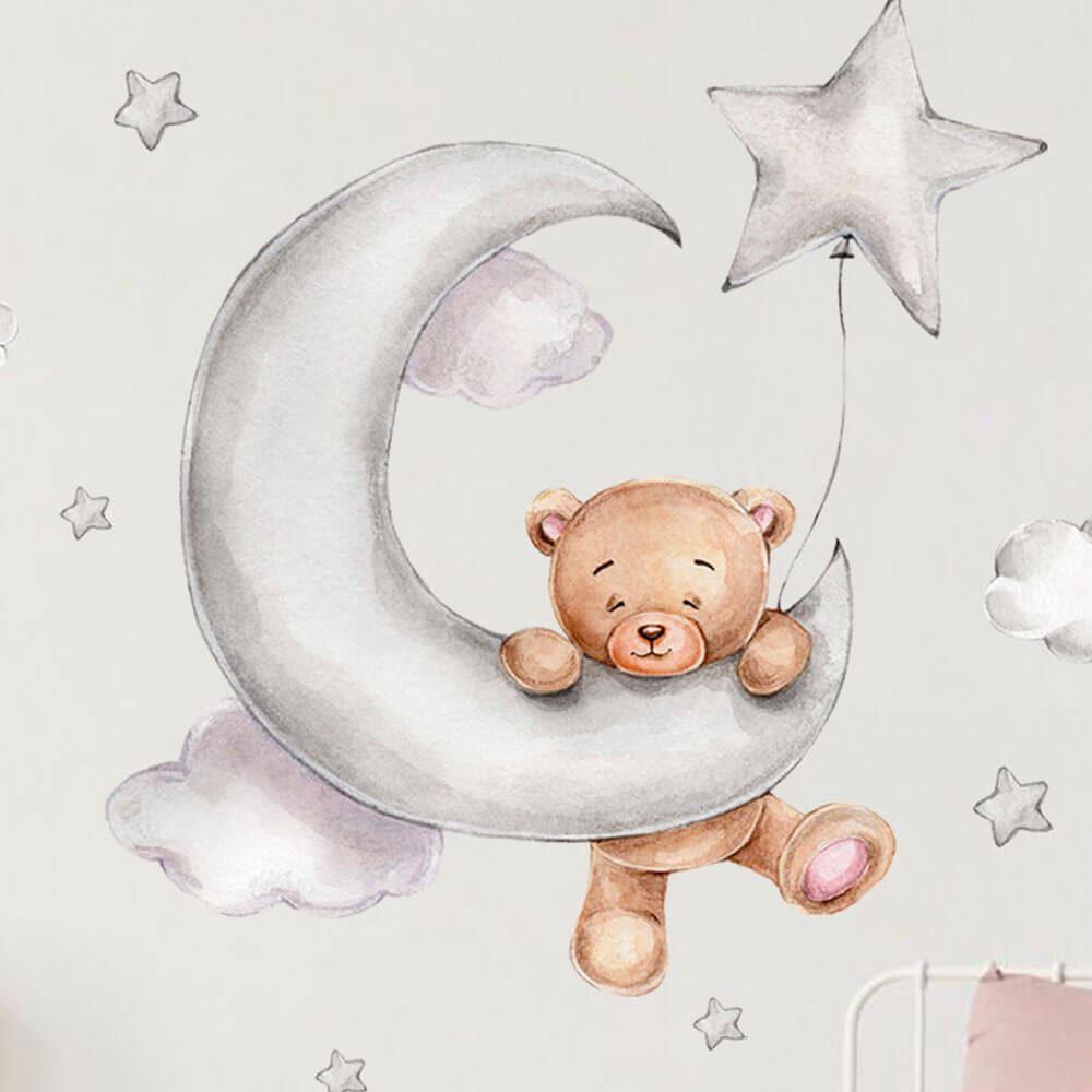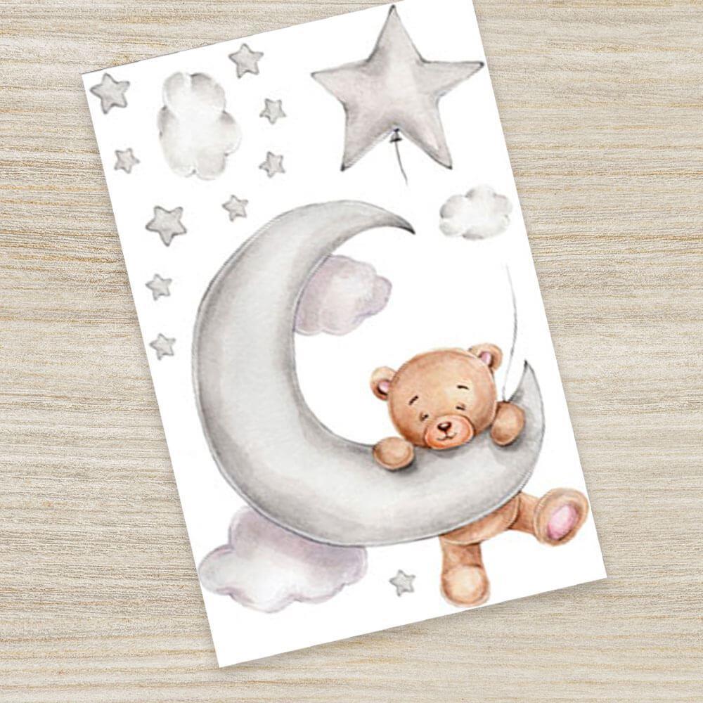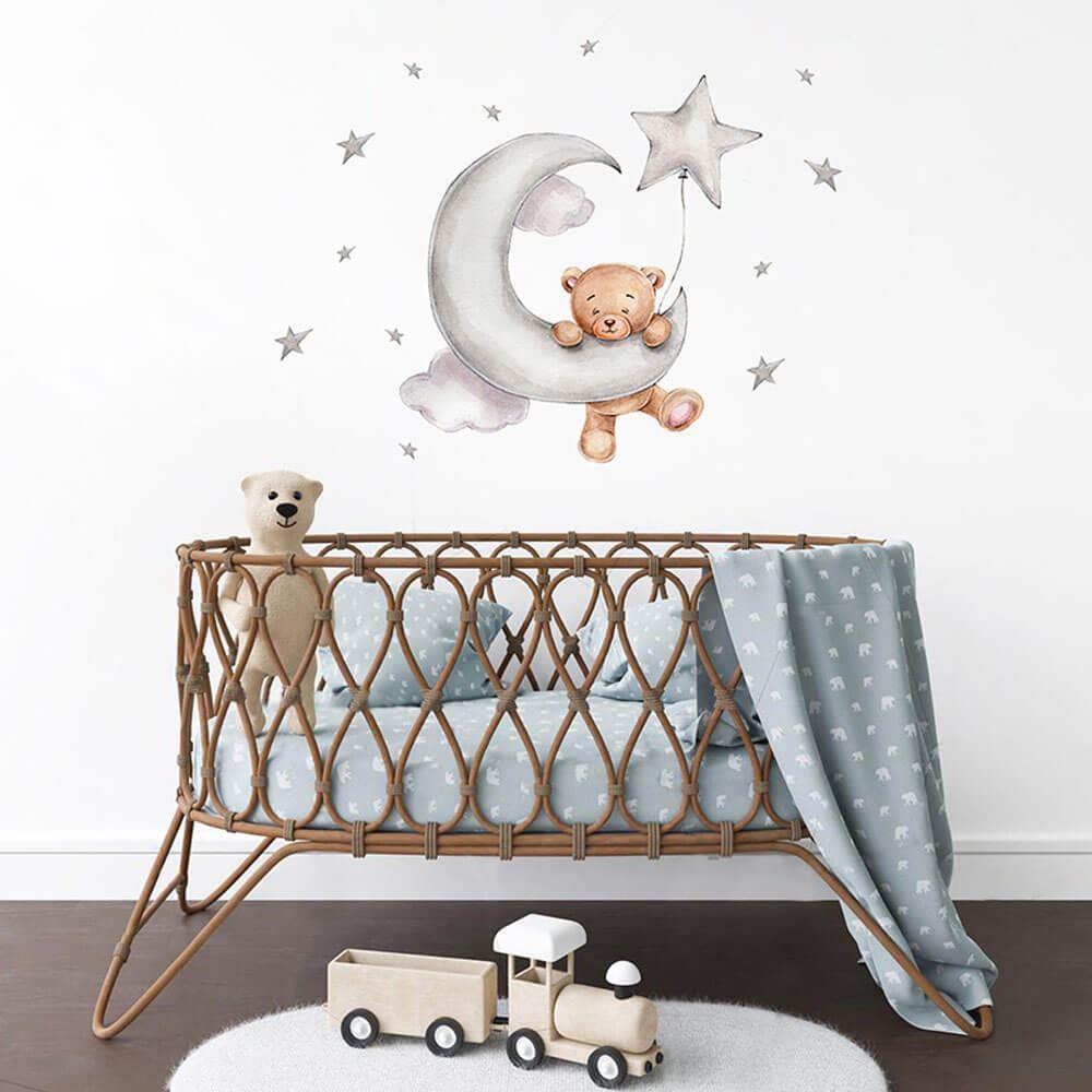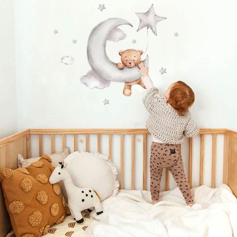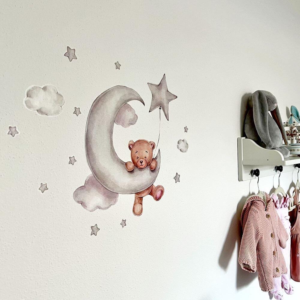 Doprowadź wystrój pokoju dziecięcego do perfekcji! Ten zestaw z uroczym misiem, chmurkami i gwiazdkami zachwyci każdego małego miłośnika misiów. Idealne miejsce na naklejenie to tuż nad dziecięcym łóżeczkiem. Miś będzie czuwał nad Twoim dzieckiem i zasypiał razem z nim. Naklejka z misiem pięknie pobudzi dziecięcą wyobraźnię zarówno podczas zasypiania, jak i zabawy.