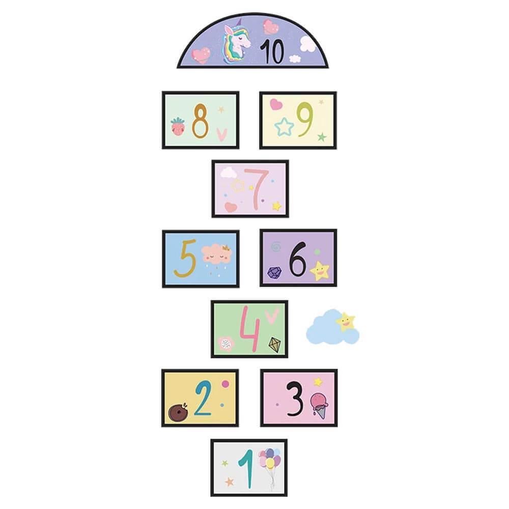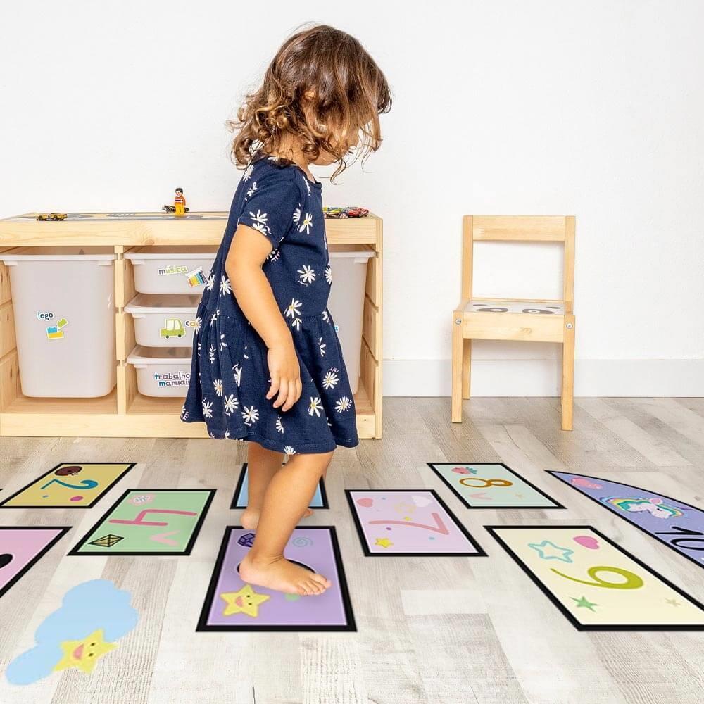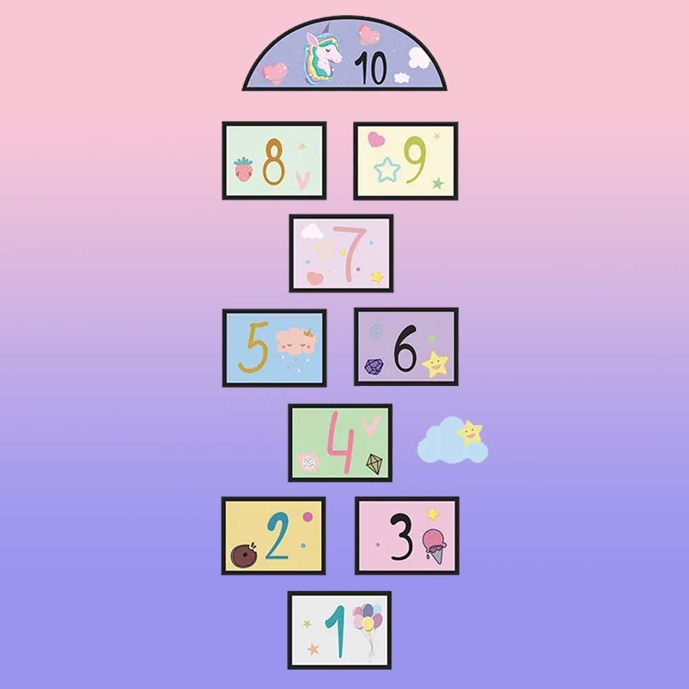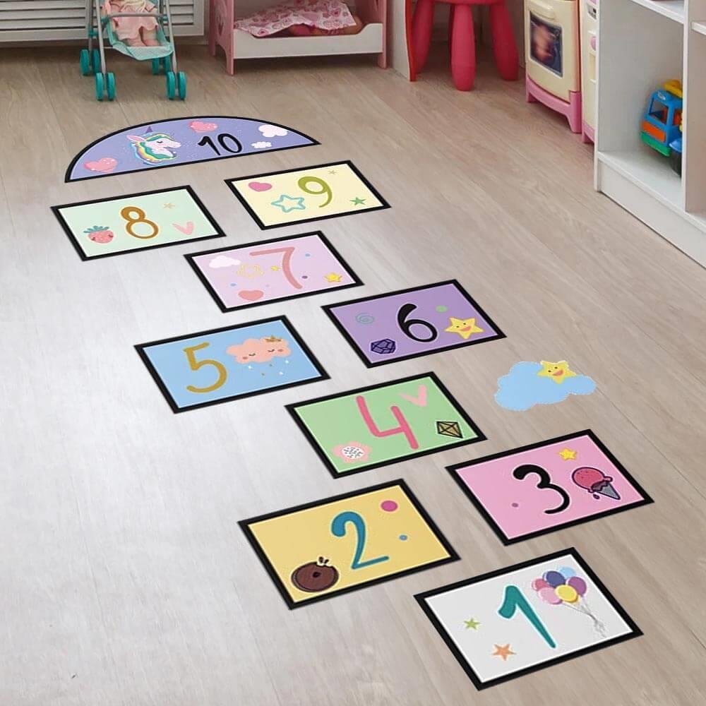 Po naklejeniu możecie cieszyć się mnóstwem zabawy! Zasady skakania w klasy na pewno już znacie, więc do dzieła. Nie tylko naklejka wspaniale ozdobi dziecięcy pokój, ale jednocześnie stworzy przestrzeń do zabawnej aktywności, podczas której dzieci ćwiczą motorykę dużą, prawidłową postawę ciała i koordynację.