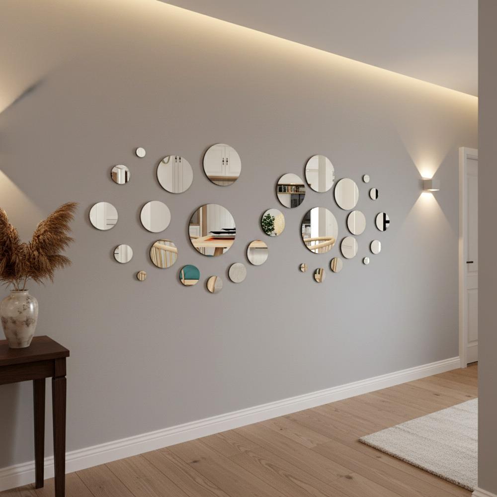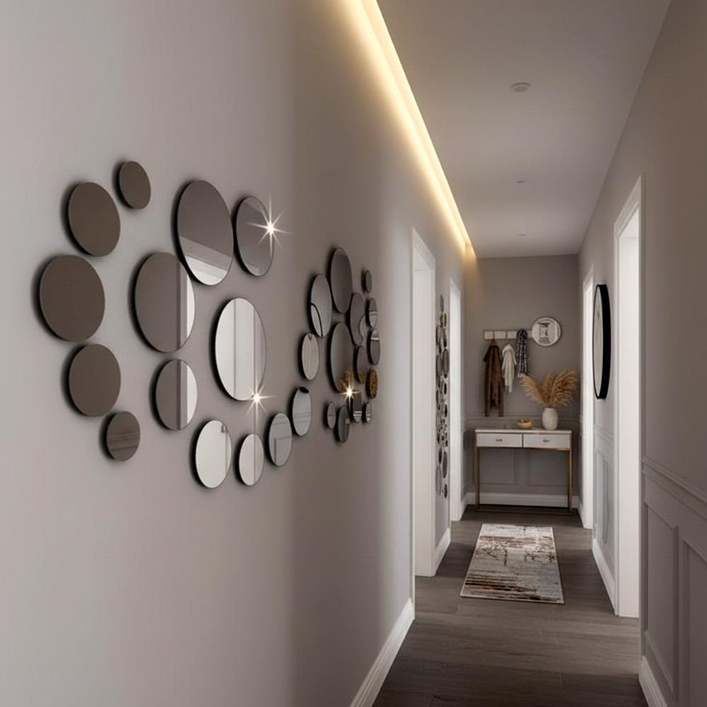 Jeśli chcesz ożywić wnętrze, piękne, eleganckie i stylowe naklejki na ścianę w formie małych lusterek będą idealnym urozmaiceniem. Dzięki lustrzanemu efektowi optycznie powiększysz przestrzeń.