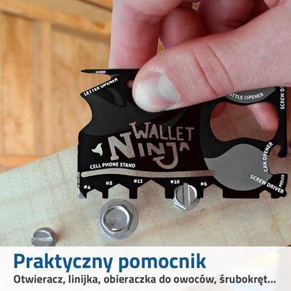 Wkrętaki, otwieracze i nie tylko Śrubokręt lub otwieracz jest przeznaczony dla każdego prawdziwego faceta! Lubisz spacerować na łonie natury, jeździć na rowerze, biwakować lub często wyjeżdżasz z domu? Ale za każdym razem, zabierasz do plecaka, śrubokręty, otwieracze lub klucze, co zapewne nie jest wygodne, ani przyjemne. Wielofunkcyjna karta Wallet Ninja zawiera do 18 przydatnych narzędzi praktycznie w jednym miejscu. Wielofunkcyjna karta jest lekka, kompaktowa i mieści się w każdym portfelu, dzięki czemu możesz ją zawsze nosić przy sobie.