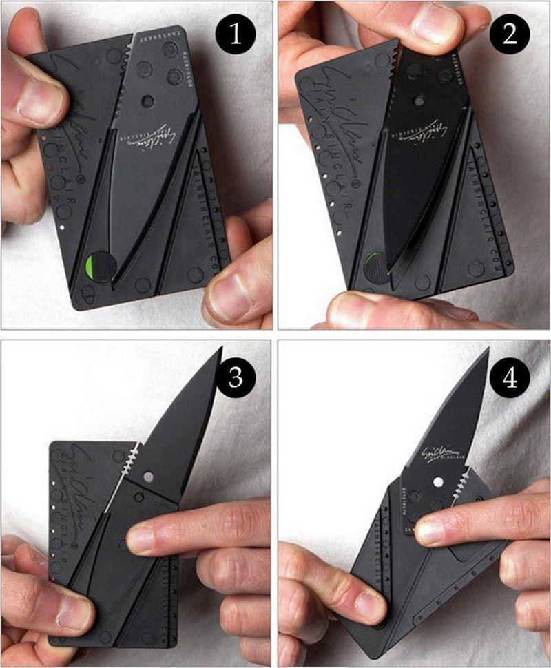Ten praktyczny nożyk został zaprojektowany i schowany w karcie kredytowej, dzięki czemu możesz go mieć zawsze przy sobie. Nie zajmuje miejsca i jest bardzo lekki. W razie potrzeby łatwo go rozłożysz i ponownie złożysz. Karta ma doskonale zaprojektowaną blokadę, więc nie musisz się obawiać, że nóż otworzy się sam. Otworzy się tylko wtedy, gdy Ty tego chcesz.