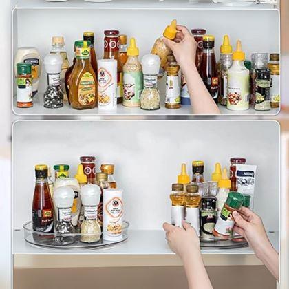 Obrotowy organizer możesz wykorzystać nie tylko w kuchni, ale także w łazience, na przykład na kosmetyki. Potrzebujesz pudru do twarzy, tuszu do rzęs i kremu? Po prostu zakręć tacą! Możesz jej również używać jako zwyczajnej tacy, gdy masz gości. A jeśli coś przypadkiem na nią wylejesz, nic się nie dzieje! Z łatwością zmyjesz to letnią wodą.