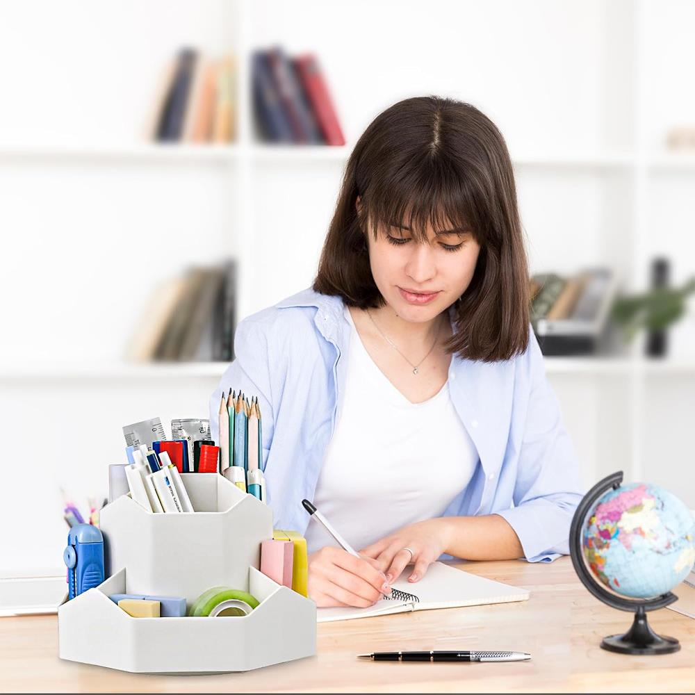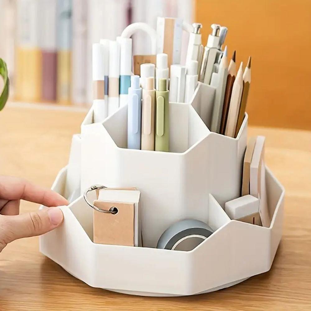 Utrzymuj swój biurko w czystości i porządku dzięki obrotowemu stojakowi na długopisy. Ten praktyczny stojak umożliwia łatwą organizację wszystkich Twoich artykułów piśmienniczych i sprawia, że zawsze masz je pod ręką. Obrotowy mechanizm ułatwia dostęp do wszystkich przedmiotów, co oszczędza Twój czas i zwiększa efektywność pracy.