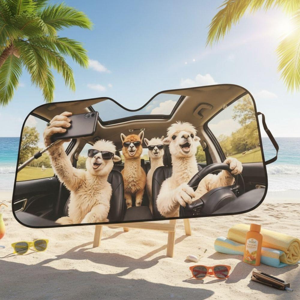 Osłona przeciwsłoneczna do samochodu z przyssawkami - lamy