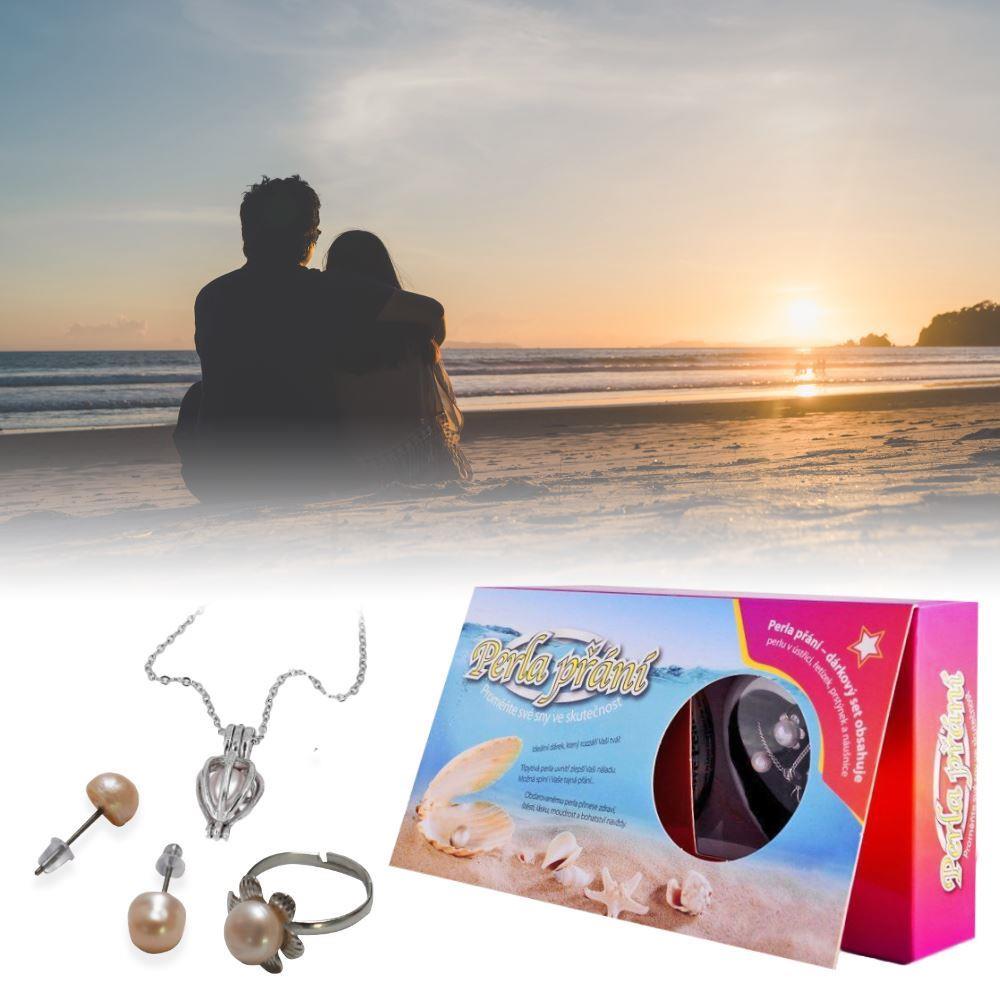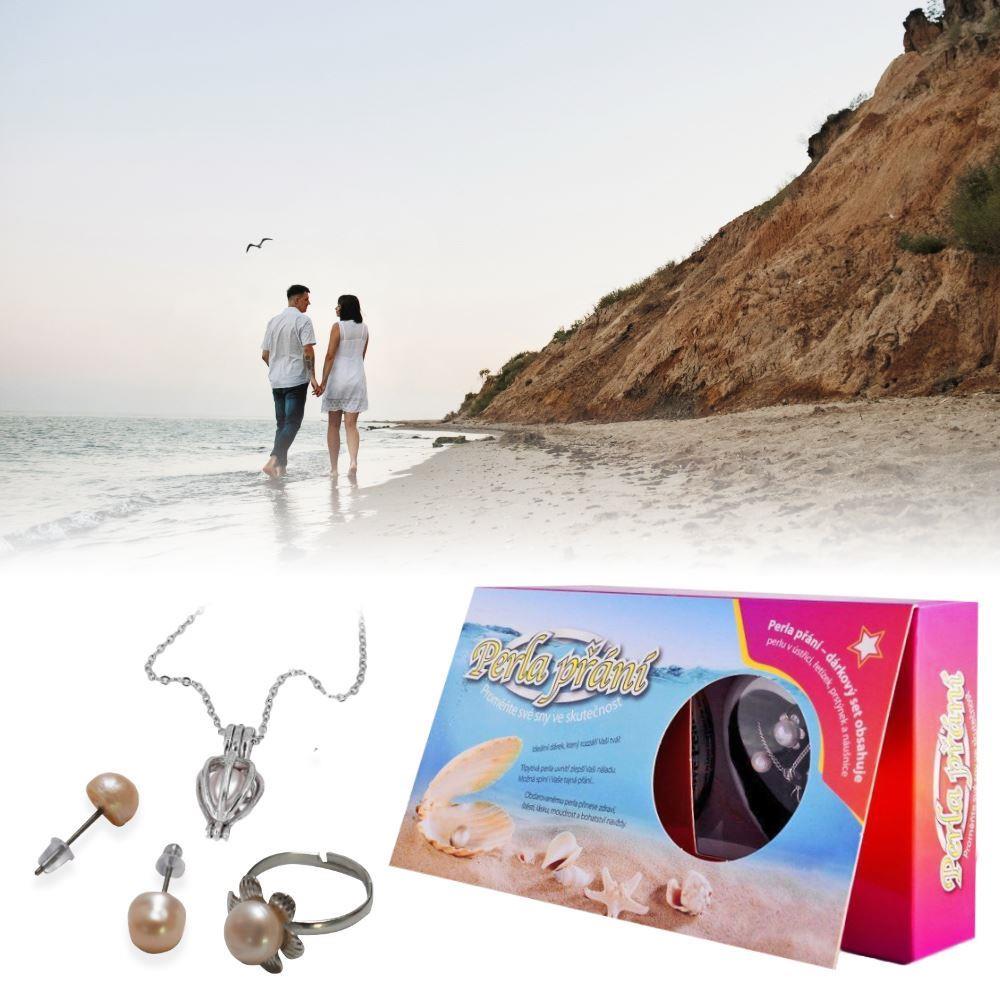 A co jest tutaj największą ciekawostką? W opakowaniu znajduje się muszla ostrygowa, a w niej kolorowa perła życzeń. Kobieta sama wyjmuje perłę i umieszcza ją w zawieszce. Zyskuje w ten sposób bardzo oryginalną biżuterię, którą może nosić na co dzień. W zestawie znajdują się także przepiękne kolczyki i pierścionek. Cały komplet jest pięknie zaprojektowany, a biżuteria doskonale do siebie pasuje. Perła życzeń skrywa kolejną tajemnicę – nigdy nie wiesz, jakiego będzie koloru, a każdy kolor coś oznacza. Perła powstała z ziarenka piasku i osiągnęła wielkość 5–8 mm.