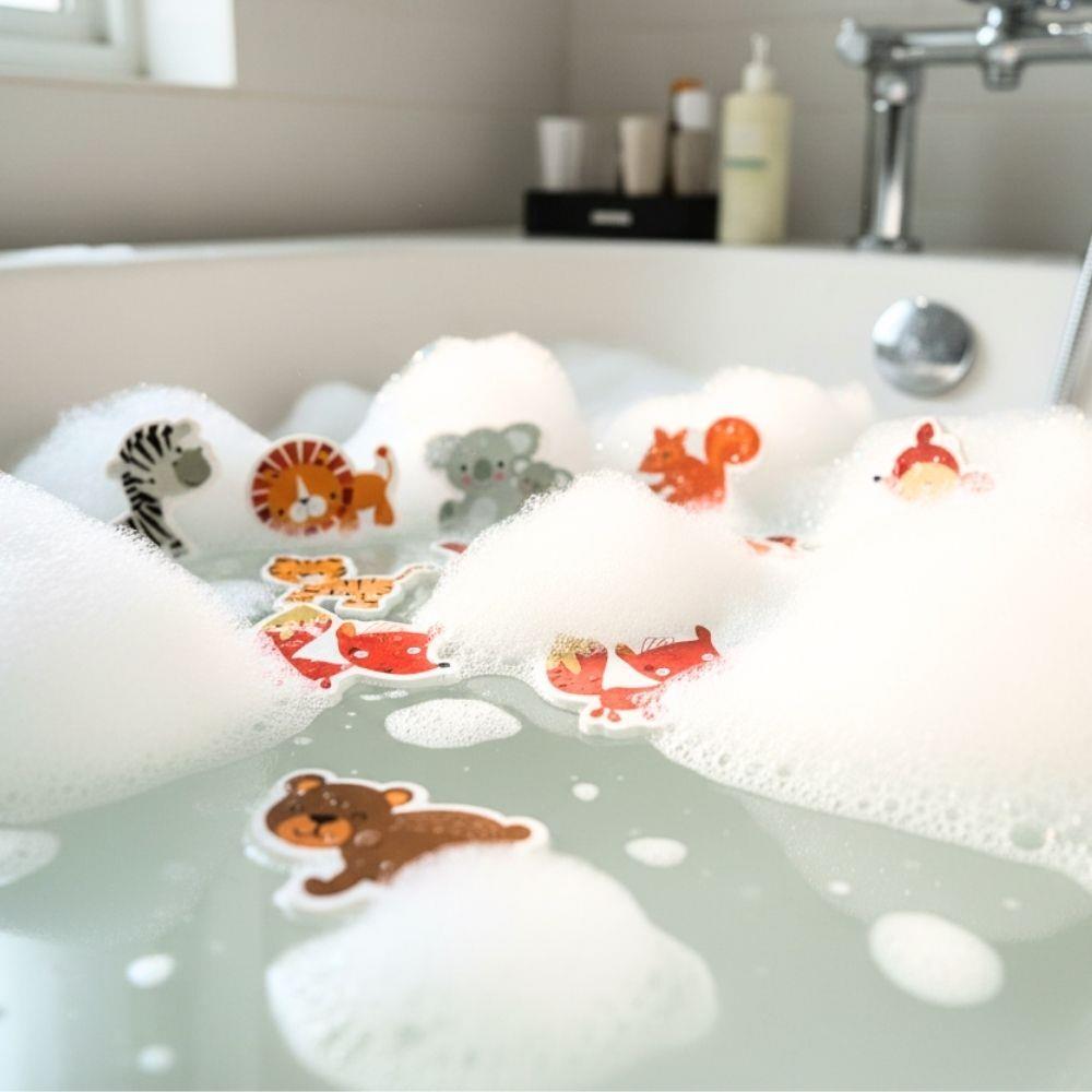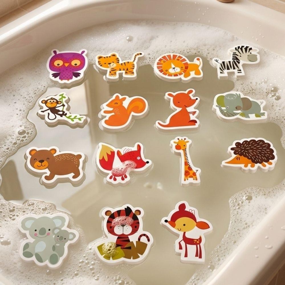 Po zmoczeniu zwierzątka przyczepiają się do gładkich powierzchni, takich jak płytki czy szkło, dzięki czemu dzieci mogą tworzyć własne opowieści bezpośrednio w wannie. Zabawka wspiera wyobraźnię, rozwija małą motorykę oraz pozytywne nastawienie do kąpieli, która staje się ulubioną częścią dnia.