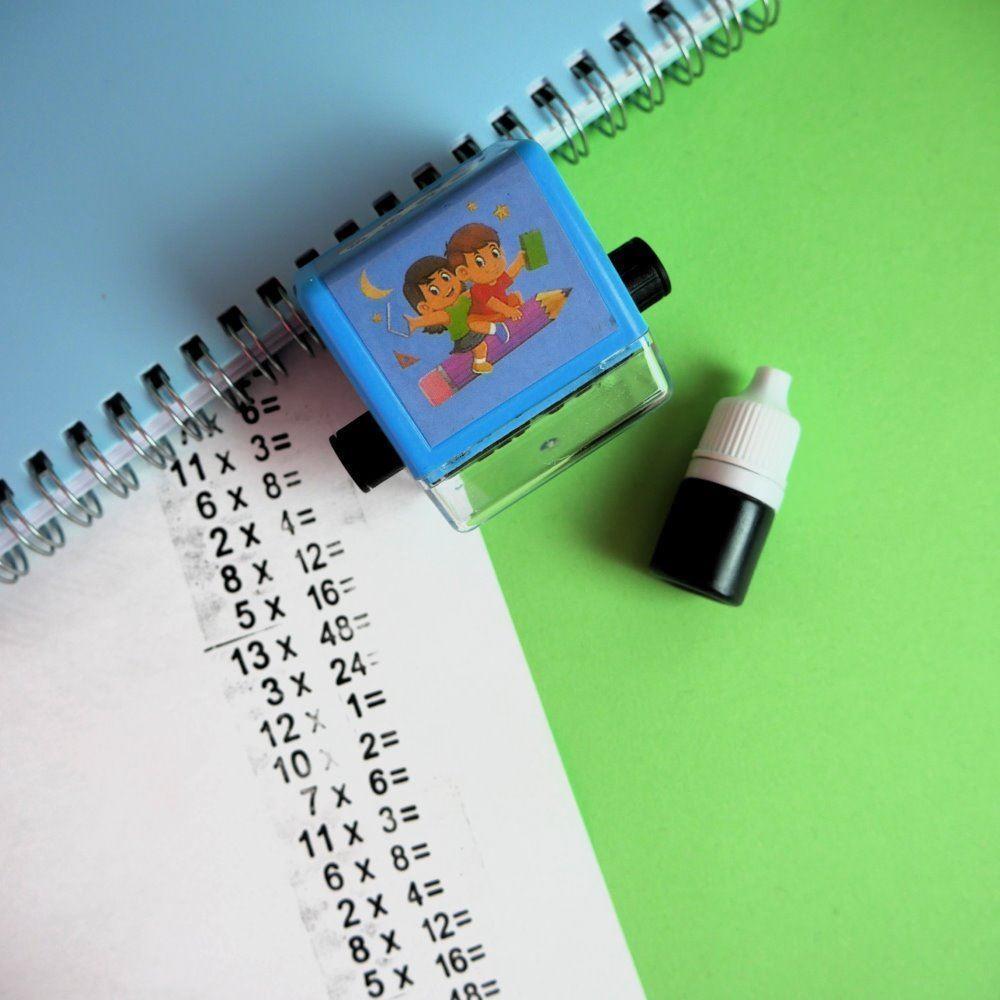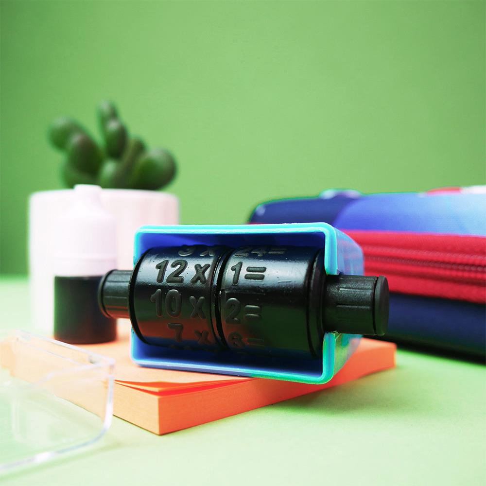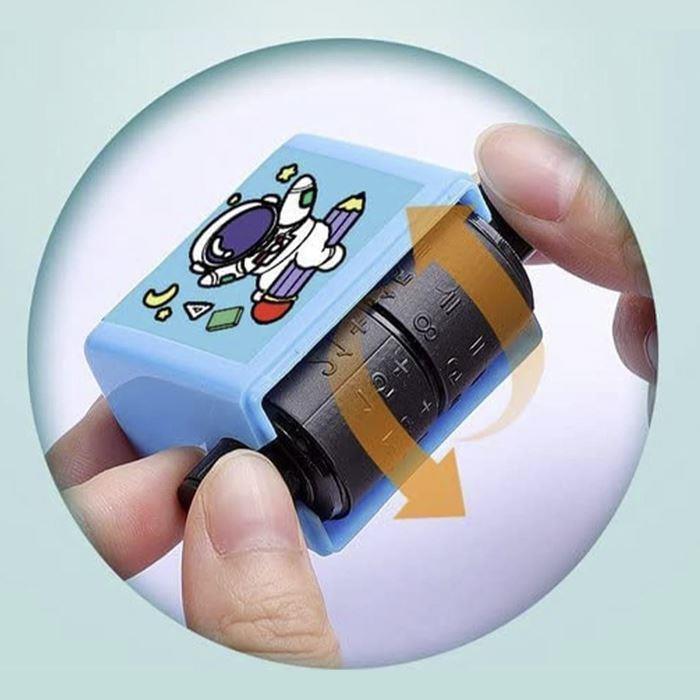 Z tym stemplem napiszesz w mgnieniu oka kilka przykładów. Dzieci będą mogły ćwiczyć swoje umiejętności matematyczne. Stempel działa tak, że ustawiasz cyfry, które pojawią się w przykładach, a potem wystarczy przesunąć go po papierze, a stempel nadrukuje kilka przykładów do obliczenia. Liczby można łatwo zmieniać, obracając pokrętło po obu stronach stempla. Dzięki temu można zmieniać przykłady, aby nie były takie same. W zestawie jest również dodatkowy atrament.