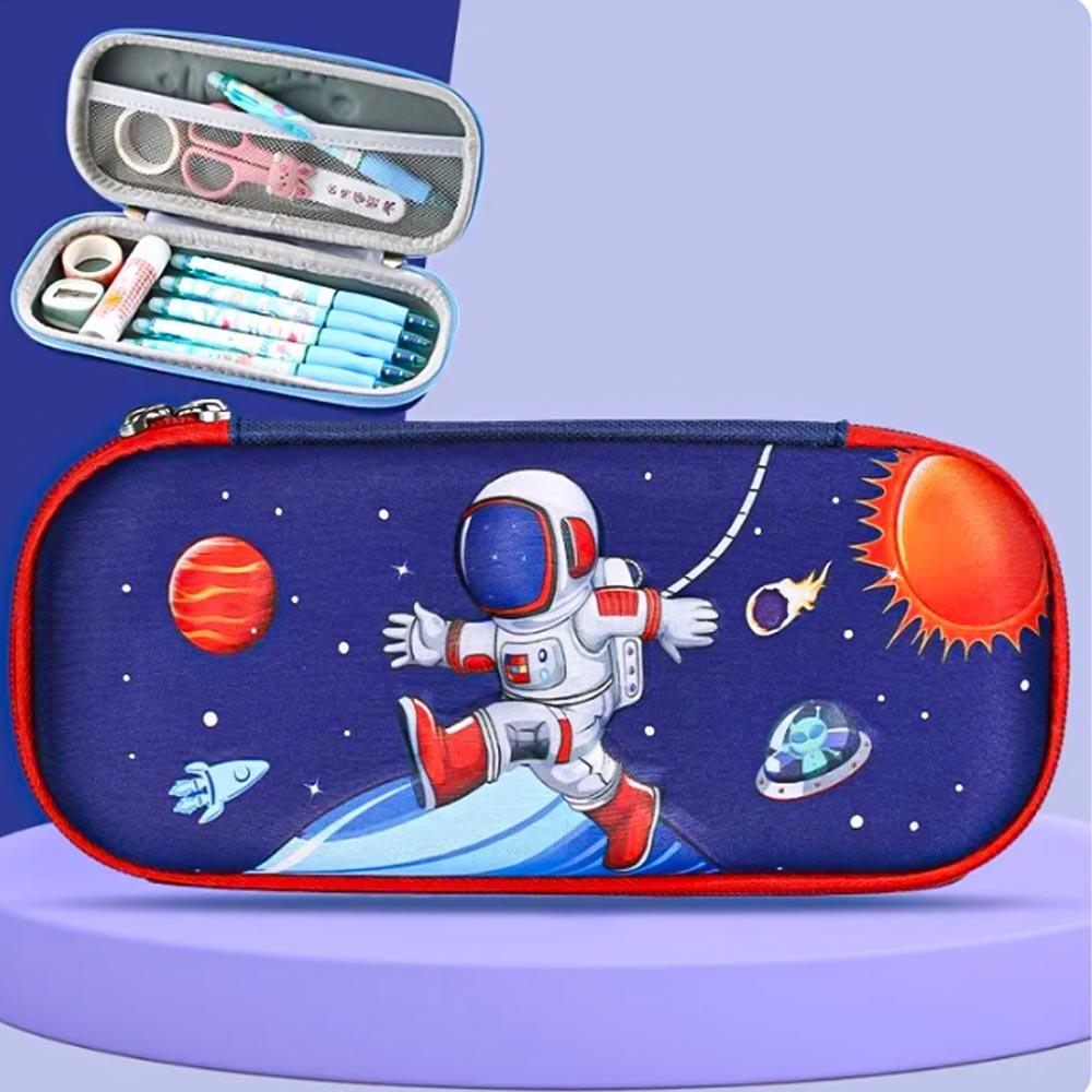 Szkolny piórnik w unikalnym 3D wzorze z motywem rakiety zachwyci każdego ucznia, który podziwia kosmos. Dzięki piórnikowi Twoi urwisy będą jeszcze bardziej cieszyć się z pójścia do szkoły. Unikalny design 3D kosmosu pięknie ozdobi szkolną ławkę. Oprócz ładnego i dopracowanego wyglądu, piórnik oferuje również dużo miejsca. Pomieści wszystkie przybory szkolne od ołówków, kredek, długopisów, gumki, aż po nożyczki.