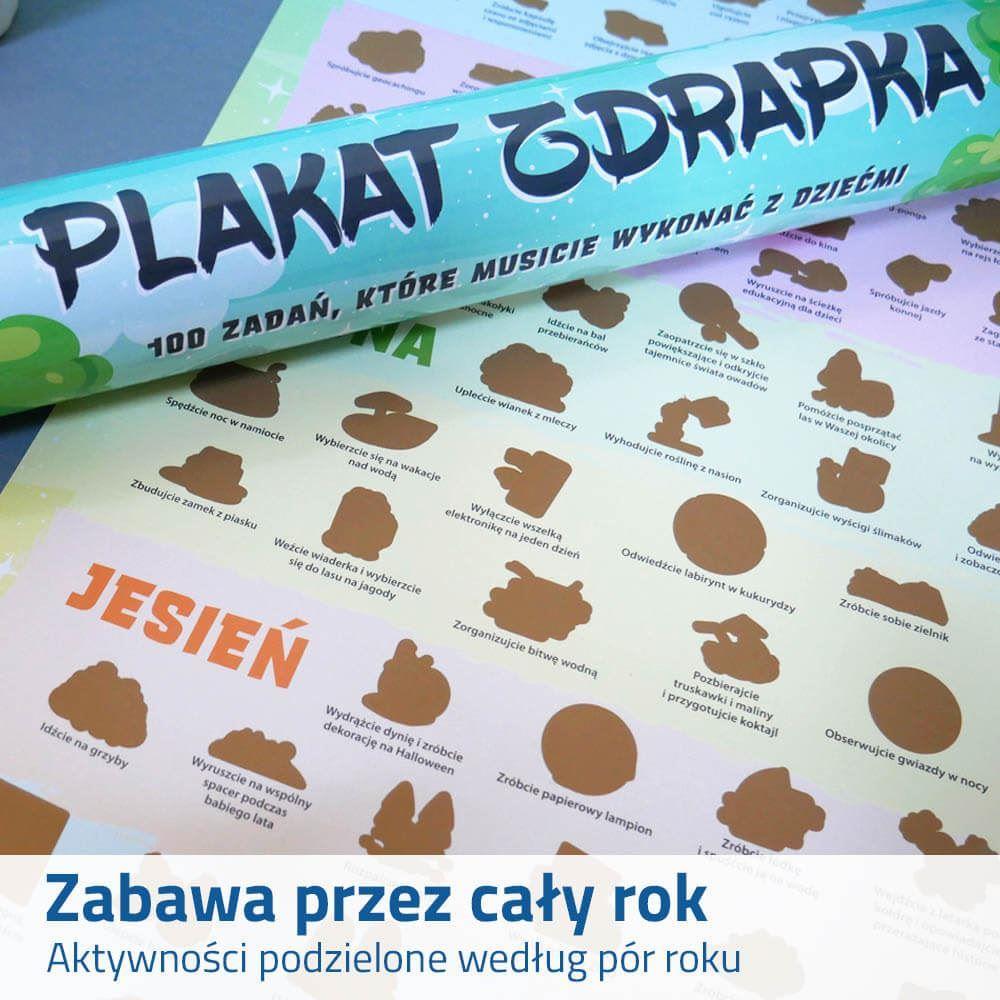 Jeden plakat do zdrapywania = 100 różnych przeżyć. Urozmaić życie sobie i swoim dzieciom wspólnymi aktywnościami. Wreszcie zabawa z rodzicami, która dzieciom się nie znudzi.