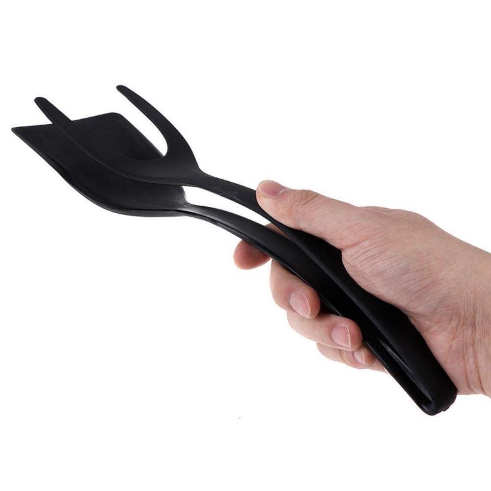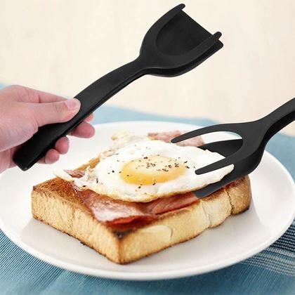 Wszechstronny pomocnik przy gotowaniu. Łopatka do obracania, która spełnia jednocześnie funkcje szczypiec. Z łatwością przygotujesz francuskie tosty, mięso i ryby. Jedzenie możesz łatwo odwrócić lub wyjąć je z patelni. Potrzebujesz tylko jednego narzędzia. To wszystko zrobisz jedną ręką, a druga pozostanie wolna, dzięki czemu możesz wygodnie trzymać w niej talerz lub na przykład napój.