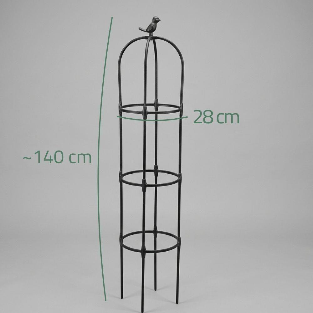 Konstrukcja składa się z kilku prętów i okrągłych elementów wsporczych, które łatwo połączyć według załączonej instrukcji. W efekcie powstaje stabilna podpora odpowiednia na przykład dla kwiatów pnących, fasoli, groszku lub innych roślin pnących.
