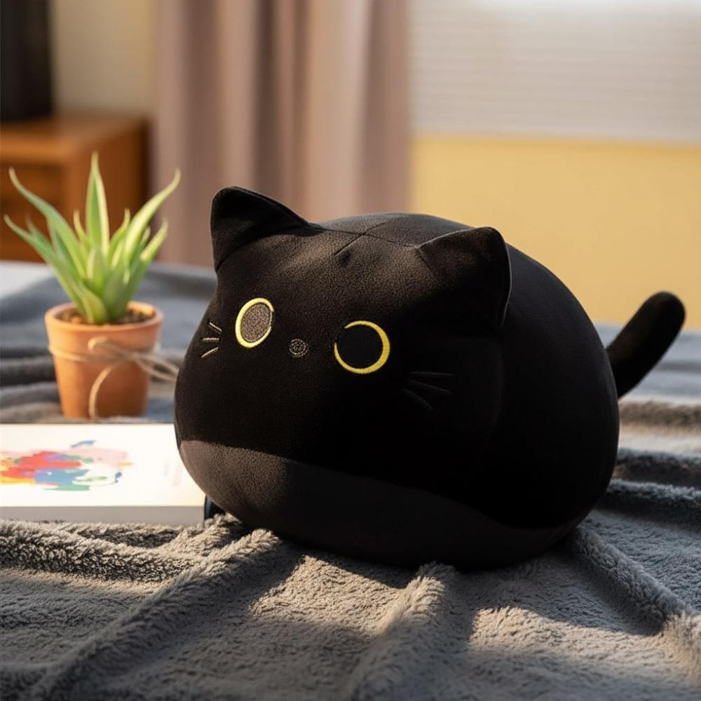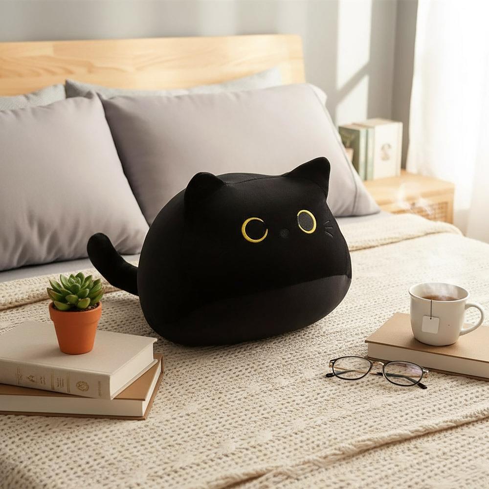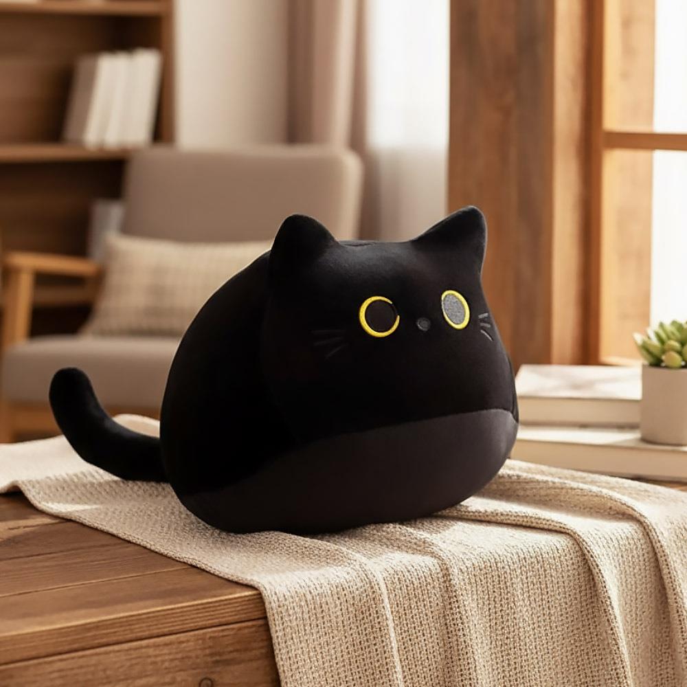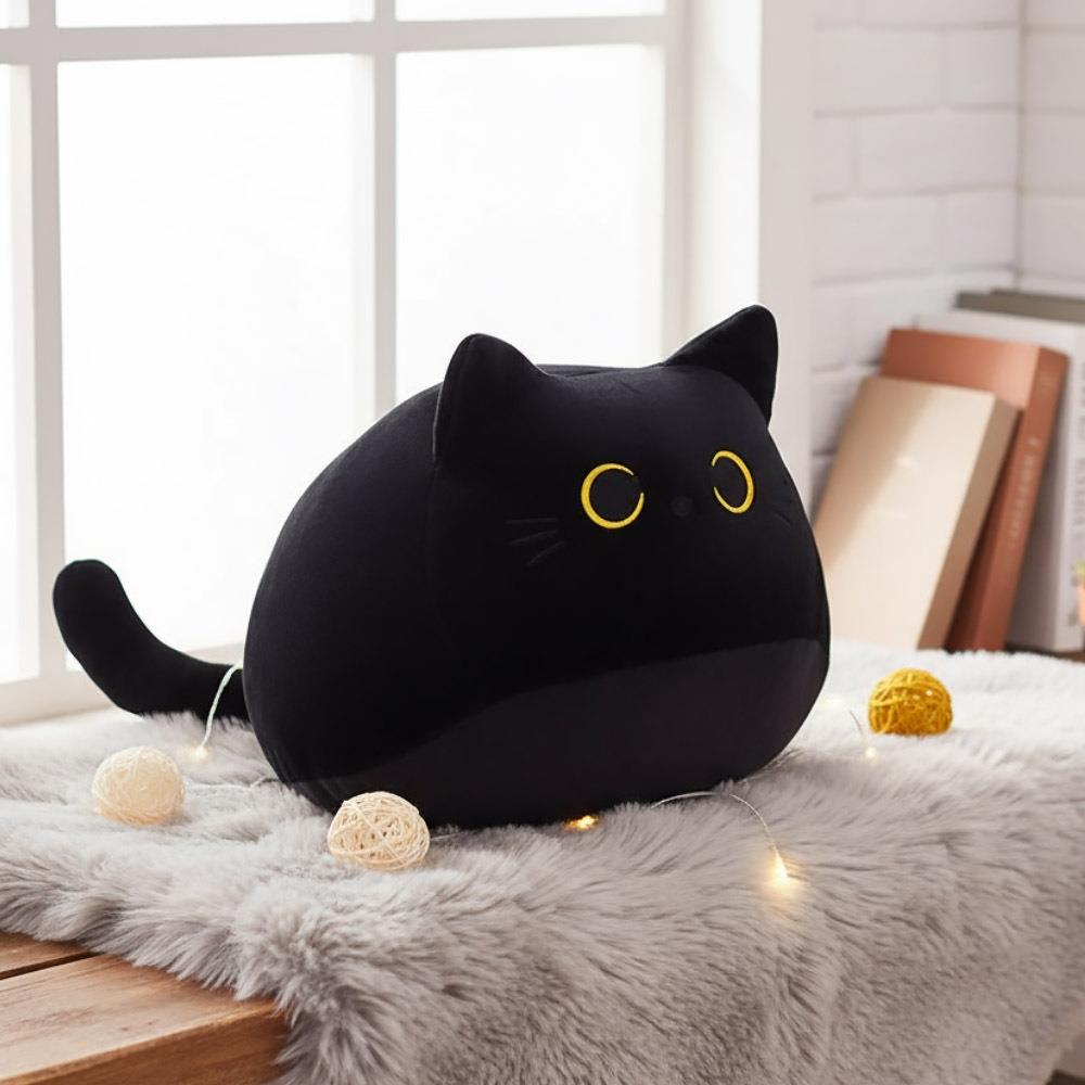 Poduszka czarna pluszowa kotka z uroczymi uszkami i ogonkiem ucieszy każdego miłośnika kotów i zwierząt. Jest odpowiednia jako dekoracja do urozmaicenia wnętrza, jako poduszka pod głowę do relaksu, ale także jako zabawka.