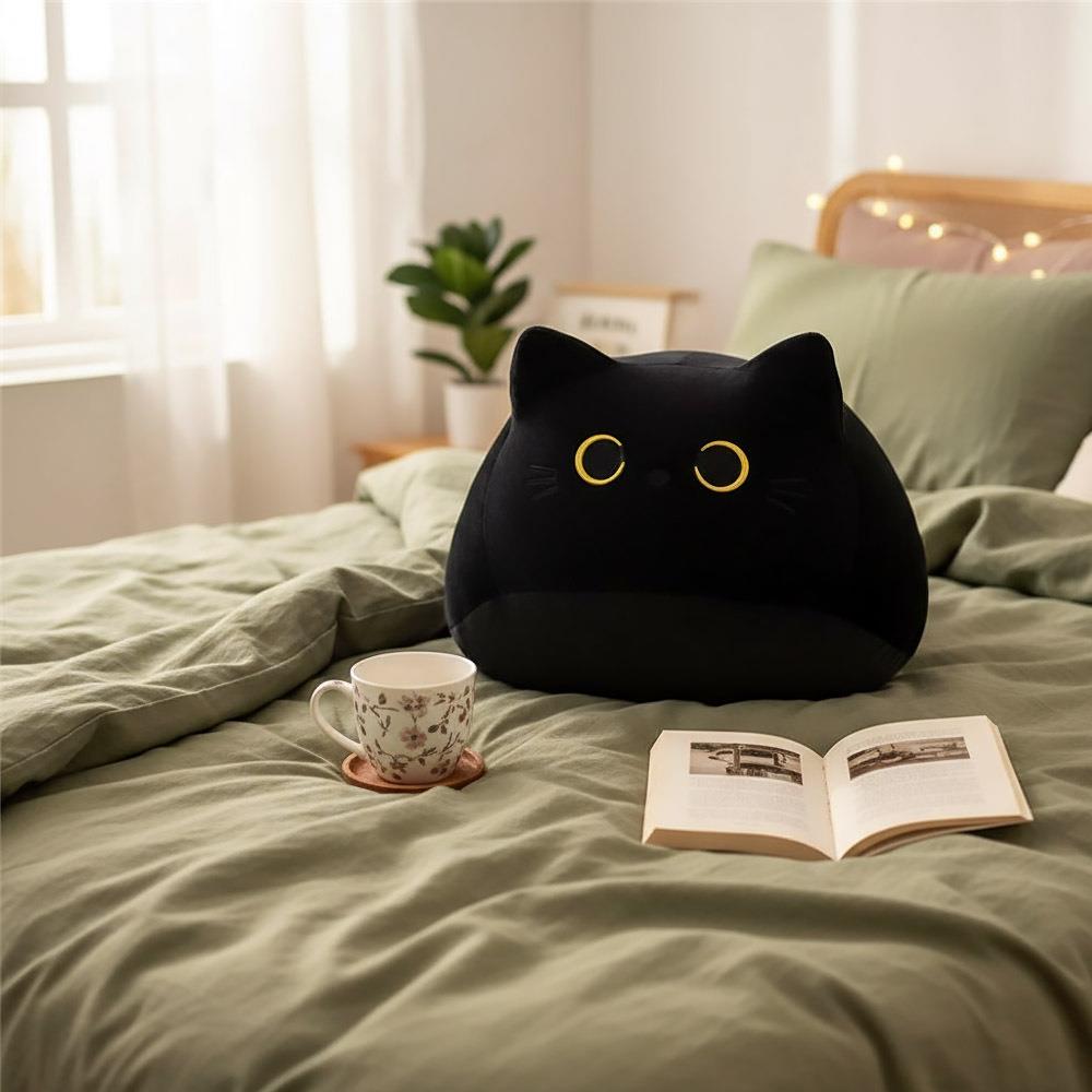 Zapomnijcie o przesądach, że czarny kot przynosi pecha. Ten uroczy, stylowy i zamszowy kotek wniesie do waszego domu radość i przede wszystkim styl! Czarne dodatki są na topie, więc dzięki tej poduszce łatwo wystylizujecie salon, sypialnię czy nawet pokój dziecięcy. Pluszowego kotka wystarczy posadzić na kanapie lub fotelu i dodać inne dekoracyjne poduszki lub miękki koc. W mgnieniu oka stworzycie przyjemny kącik relaksacyjny.