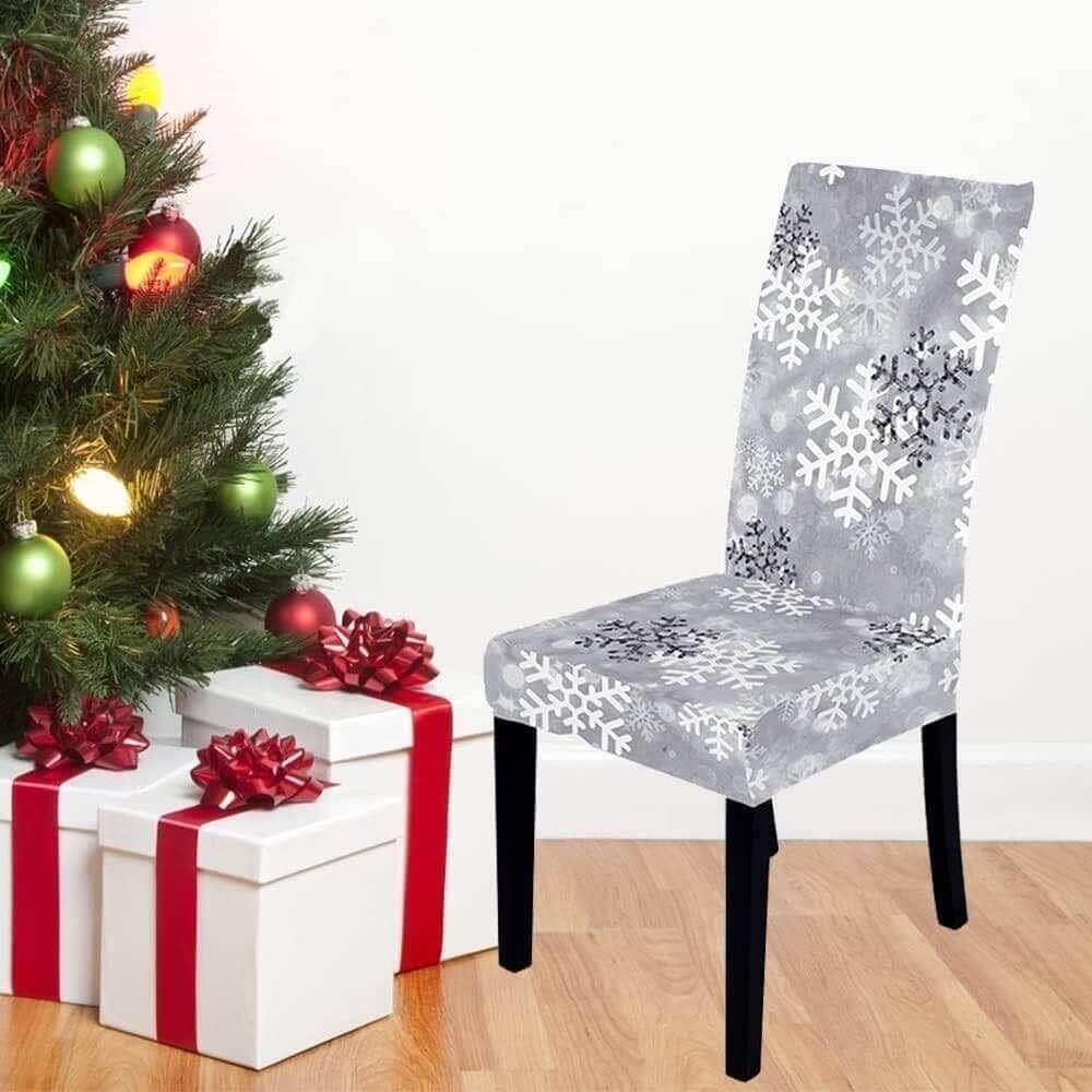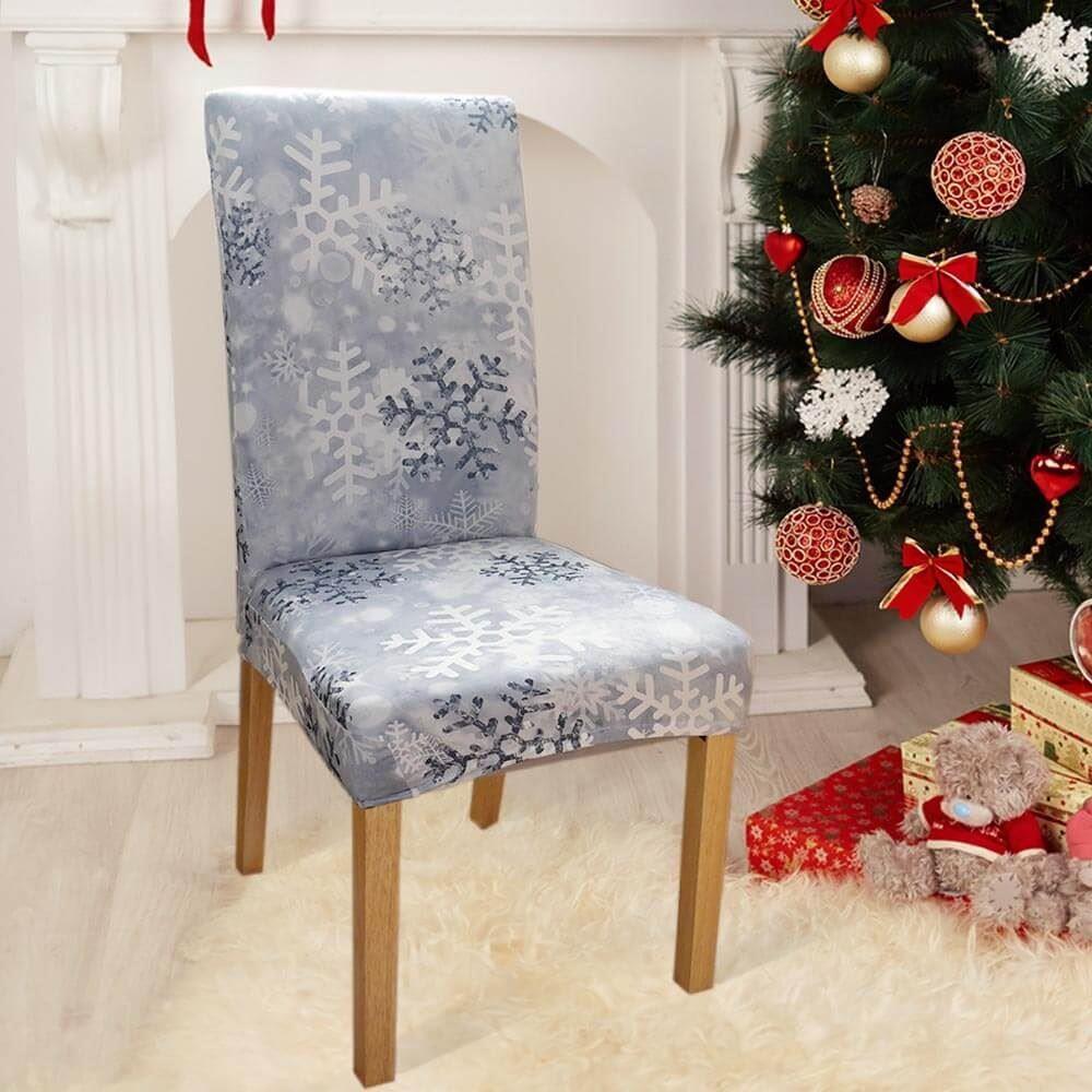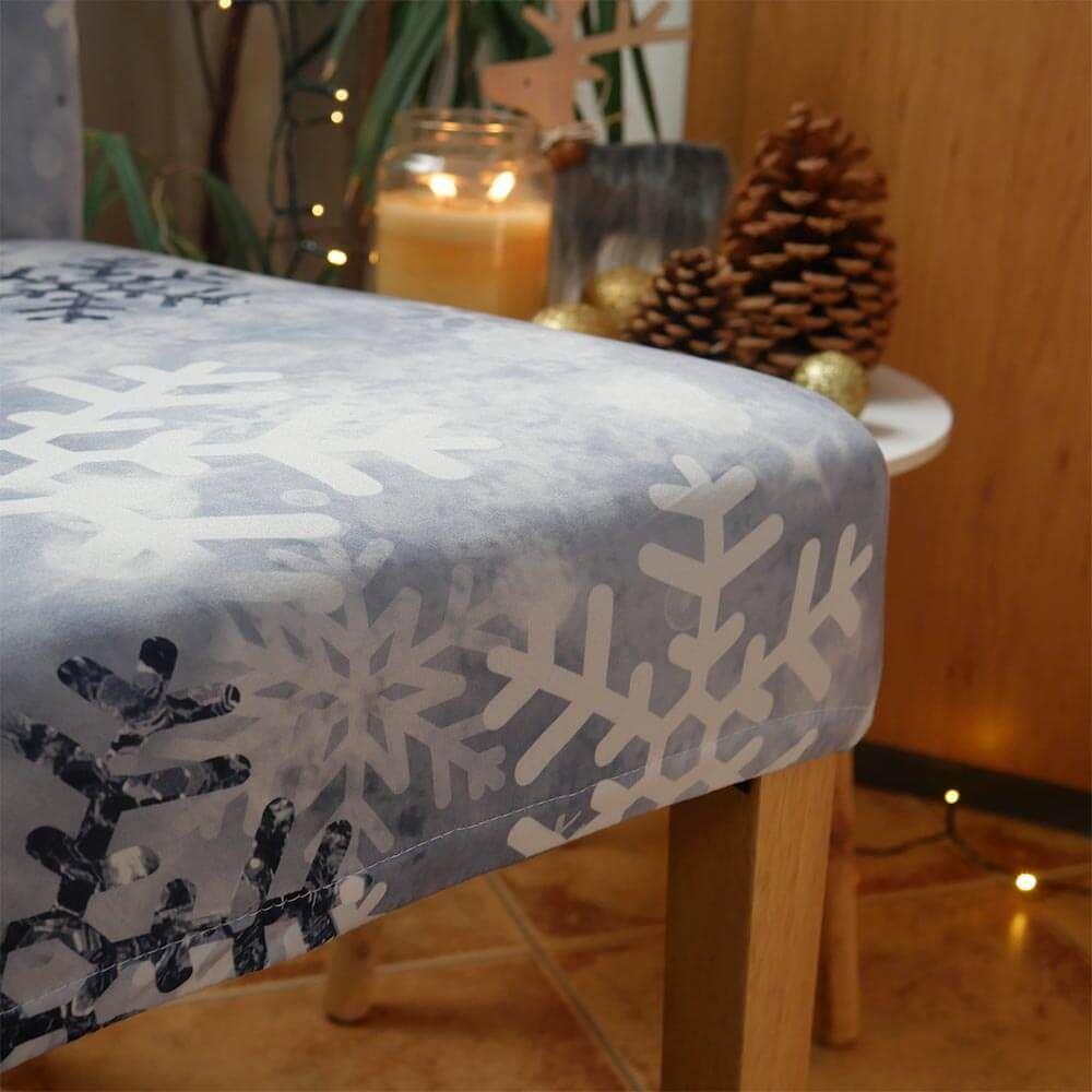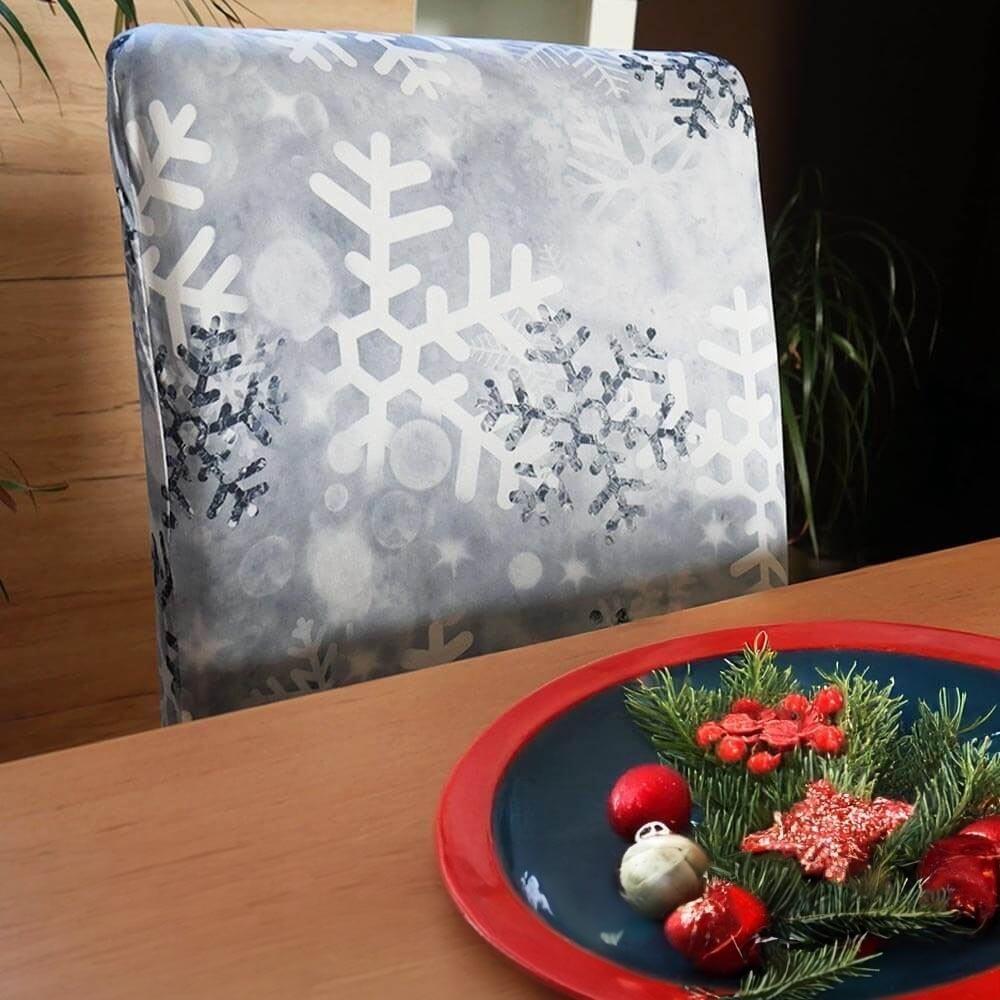 Pokrowiec na krzesło z motywem świątecznym - płatki śniegu