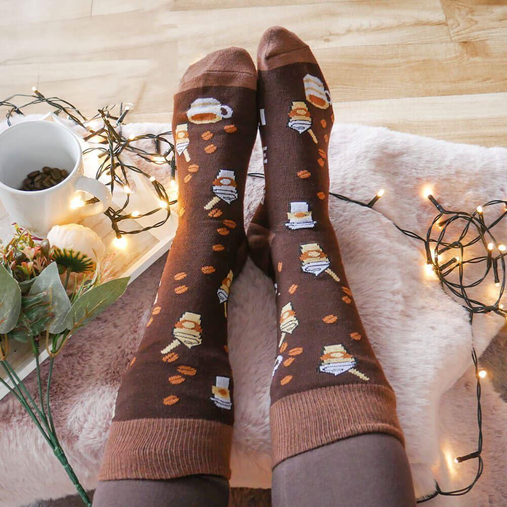 Wzbogać swoją garderobę o oryginalne kawowe skarpetki