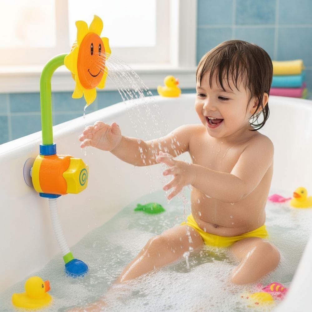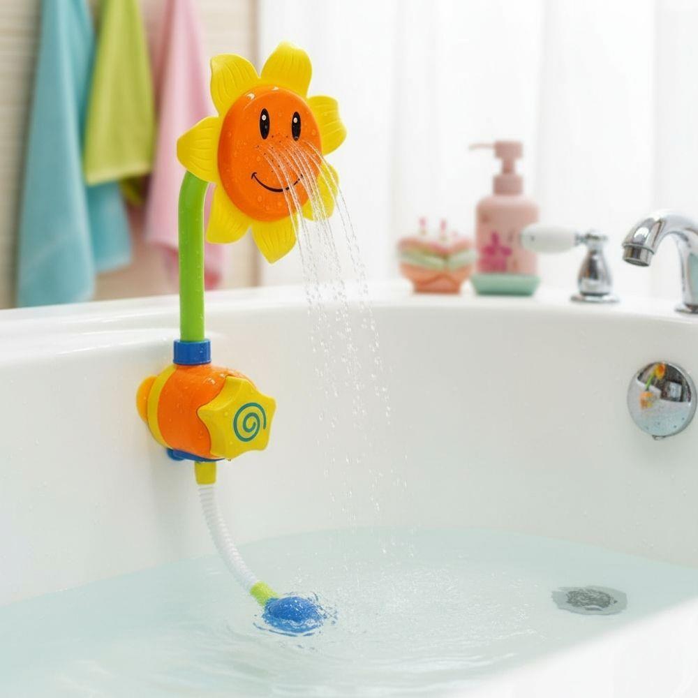 >Kolorowy prysznic w kształcie słonecznika spodoba się dziewczynkom i chłopcom. Dzieci będą miały mnóstwo zabawy ze słonecznikiem nie tylko podczas codziennego mycia w wannie, ale także w letnich miesiącach podczas zabawy w basenie. Prysznic działa na zasadzie mechanicznej, gdzie po naciśnięciu przycisku ssie wodę i zaczyna ją rozpylać.