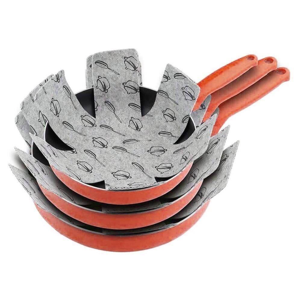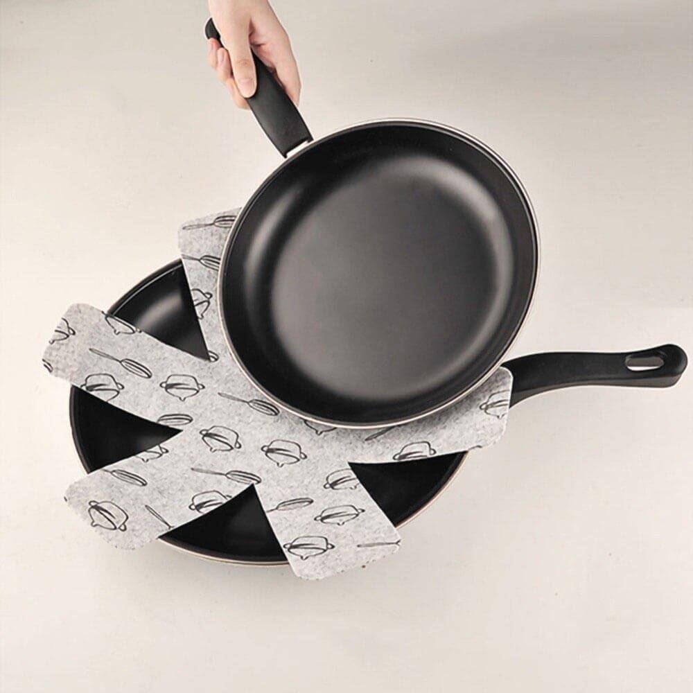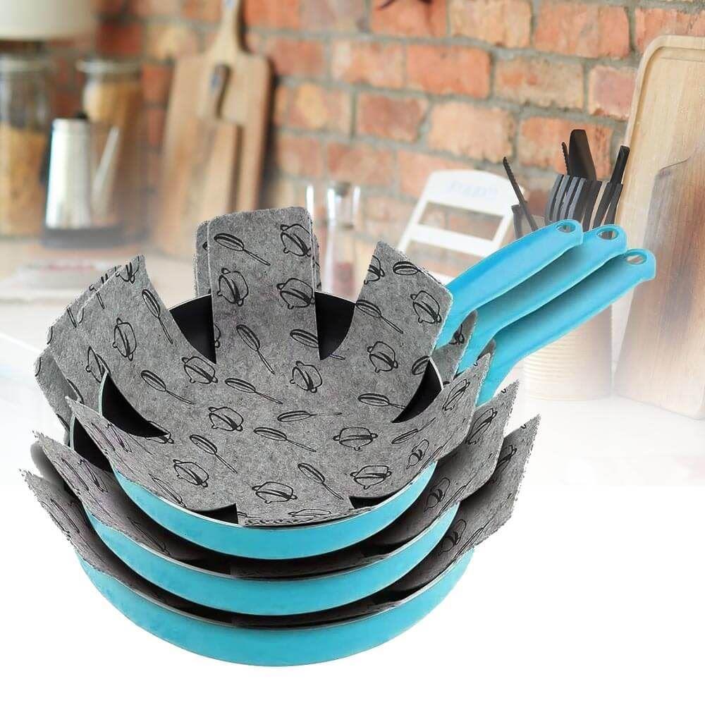 Dzięki przekładce do naczyń nie musisz się już martwić. Umieść ją między poszczególnymi patelniami i garnkami i możesz je układać w stosy tak, jak tylko zechcesz. Naczynia będą dobrze poukładane, a twarde części nie będą się o siebie ocierać. Każda gospodyni domowa doceni takiego pomocnika.