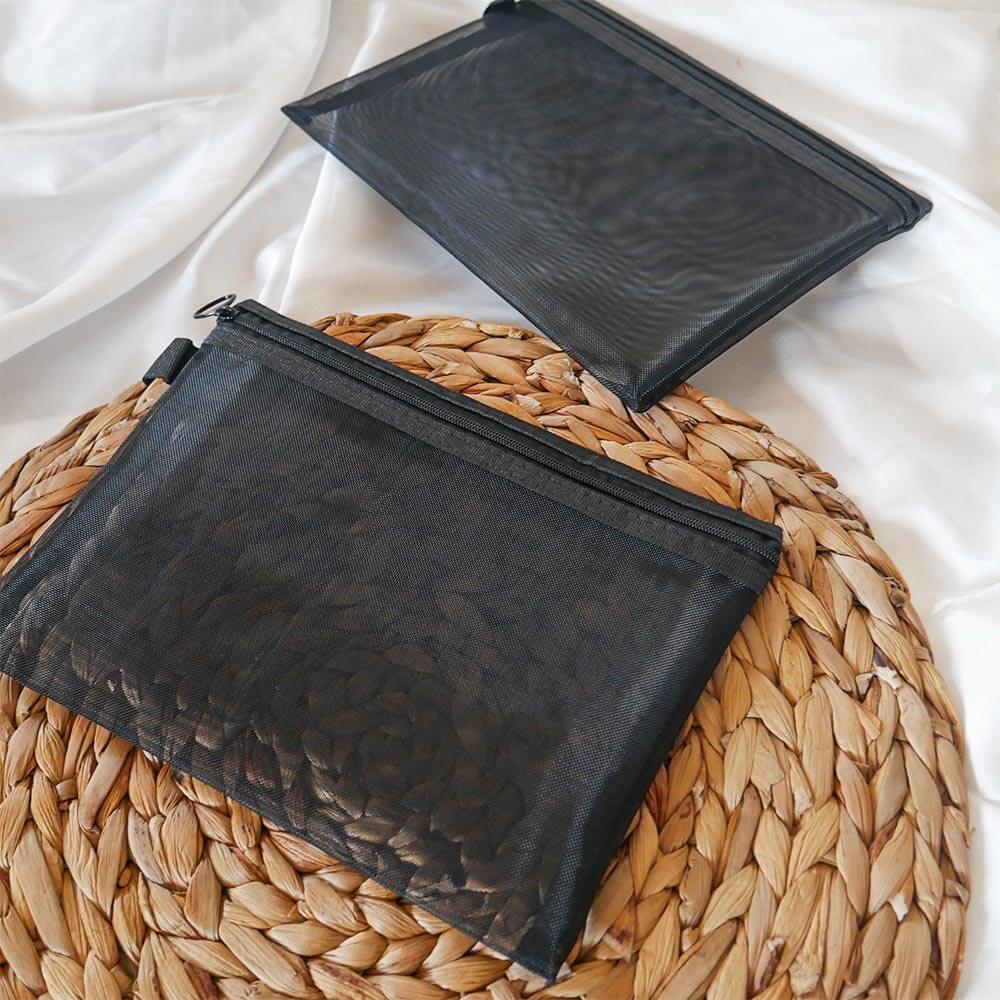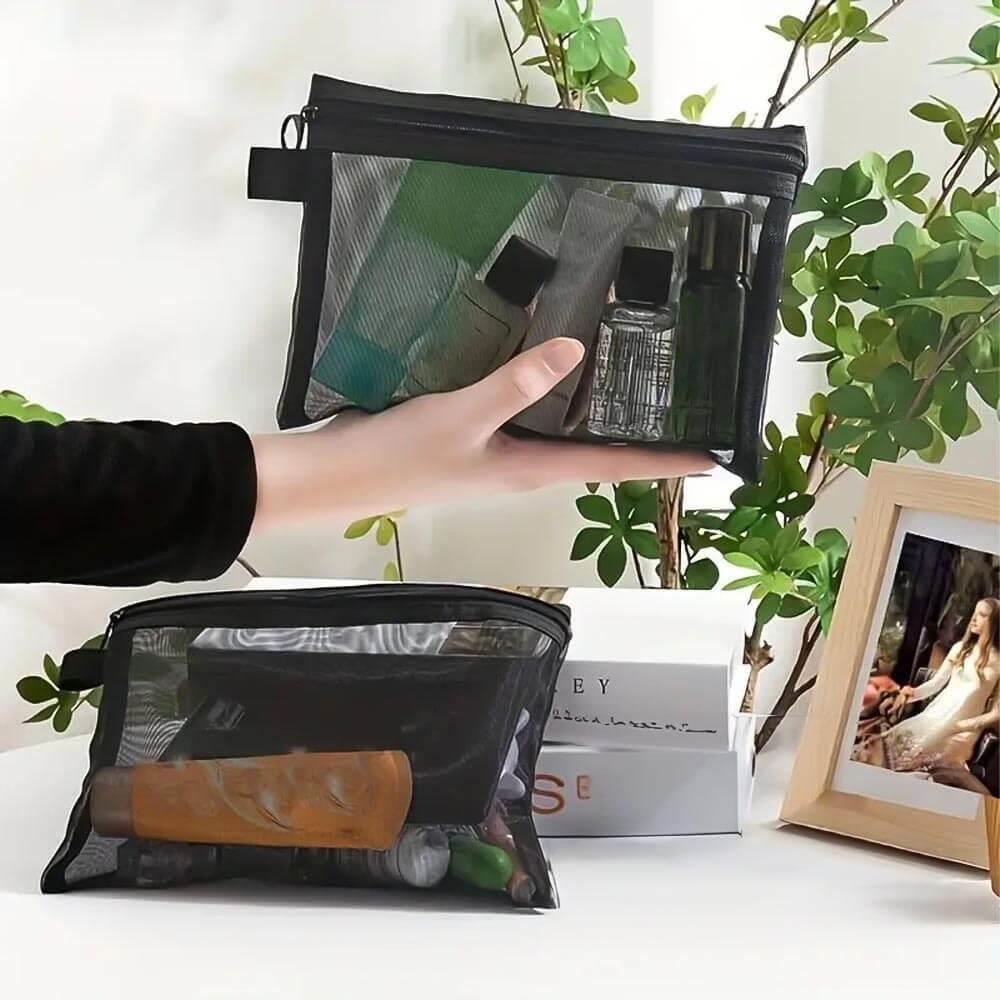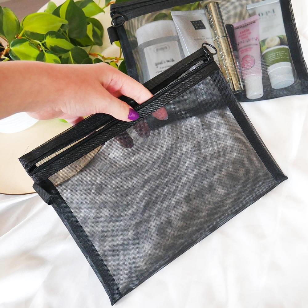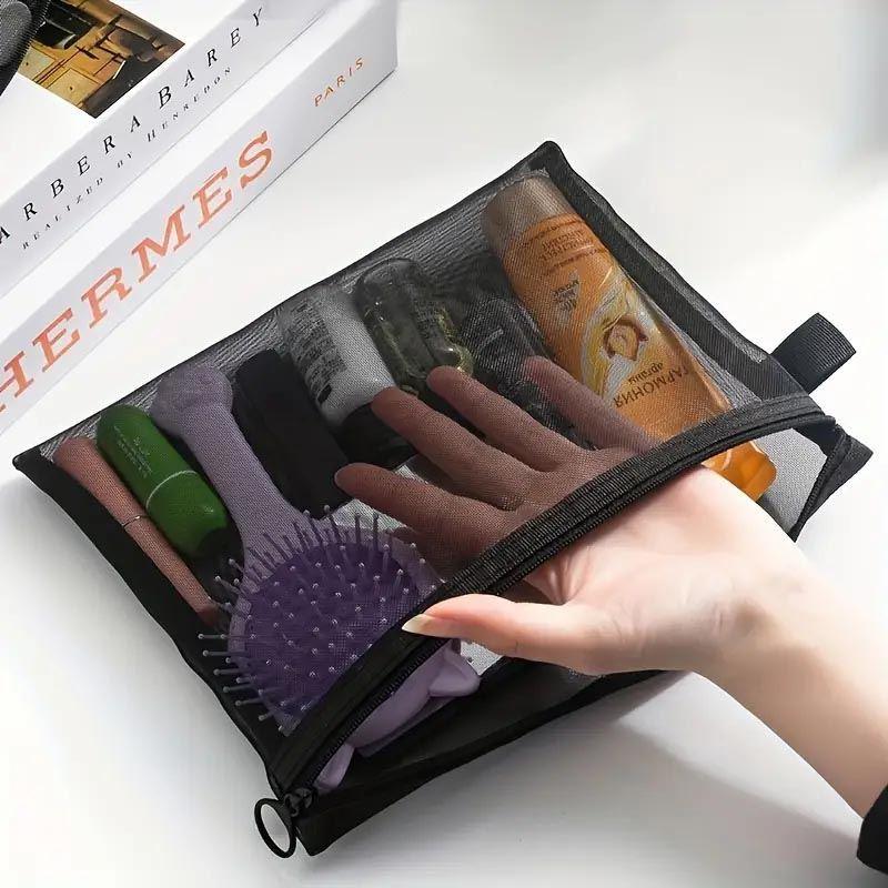 Zorganizuj swoje drobiazgi z łatwością dzięki siatkowej saszetce na zamek błyskawiczny.