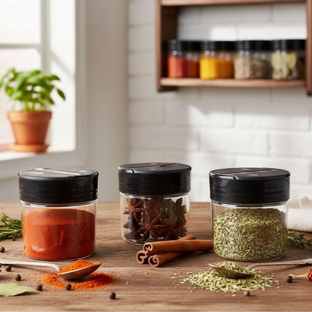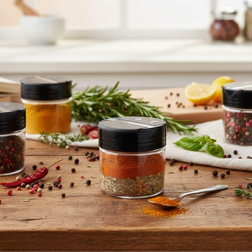 Przyprawy są esencją każdego dania, a transparentna przyprawniczka pomoże ci doprawiać z precyzją i bez bałaganu! Dzięki sprytnemu wieczku z dwiema komorami możesz wybrać między delikatnym posypaniem lub szerszym otworem do odmierzania łyżeczką. Przezroczyste ciało pozwala natychmiast zobaczyć ilość przyprawy, podczas gdy mechanizm uszczelniający chroni zawartość przed wilgocią i dłużej zachowuje jej aromat.