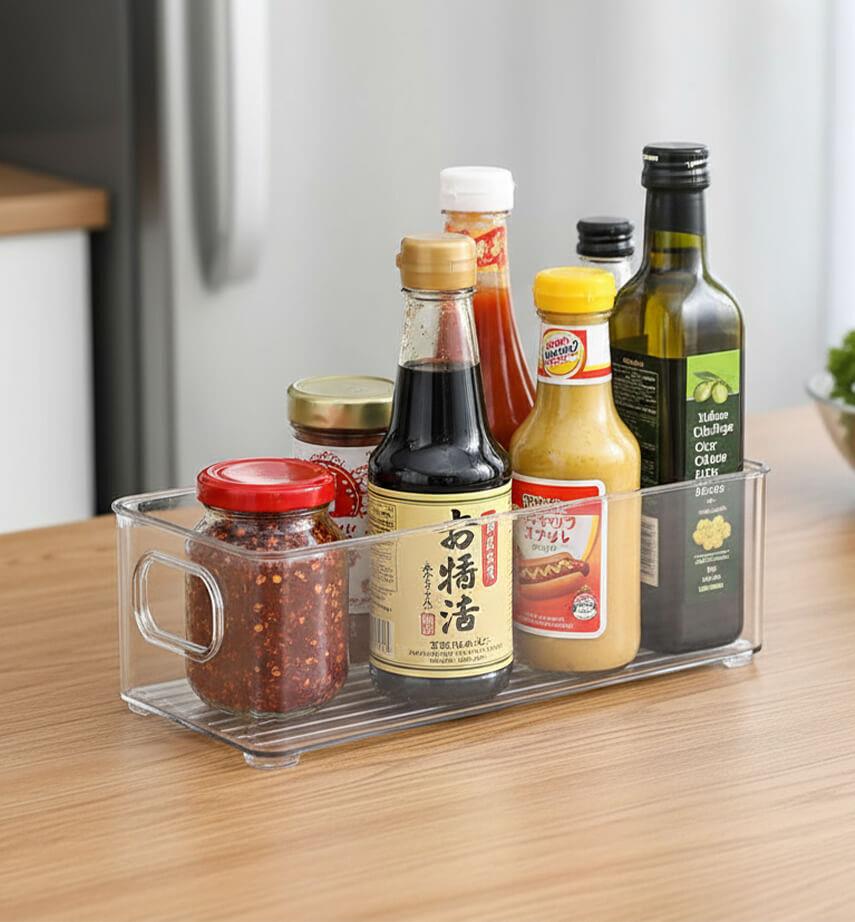 Porządek w domu zaczyna się w kuchni. Z przeźroczystym organizerem zyskujesz świetnego pomocnika, który pomoże zorganizować wszystko od przypraw po środki czystości. Dzięki przeźroczystemu designowi natychmiast widzisz zawartość, co oszczędza czas podczas gotowania i przygotowywania posiłków. Jego kompaktowy rozmiar zapewnia, że zmieści się prawie wszędzie, a dzięki lekkiej konstrukcji łatwo go przeniesiesz. Świetnie nadaje się nie tylko do kuchni, ale także do organizowania kosmetyków lub biurowych drobiazgów. Utrzymanie porządku nigdy nie było prostsze.