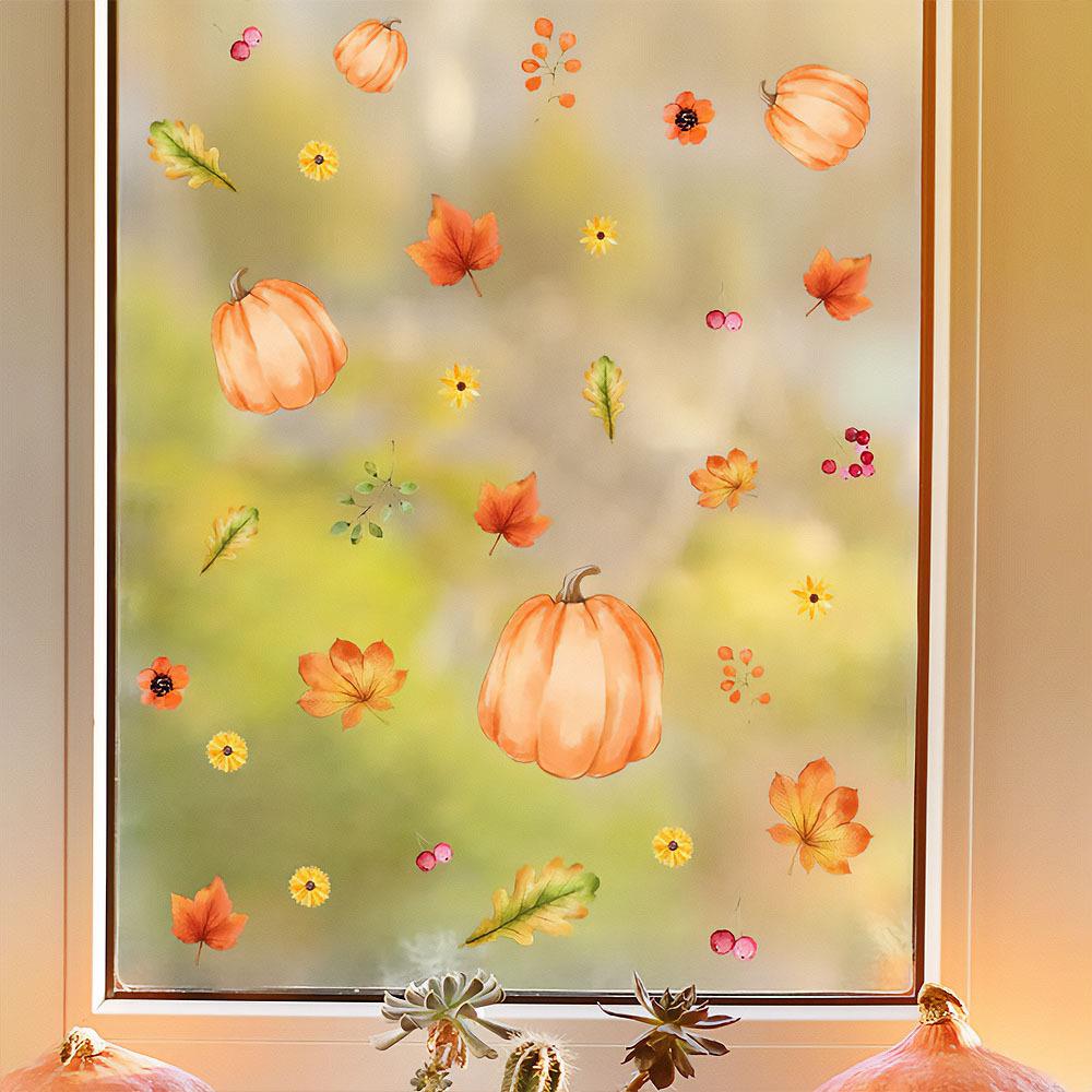 Zamień swoje okna w magiczną, jesienną opowieść dzięki tym naklejkom! Motywy z dyniami, listkami i jagodami natychmiast wprowadzą Cię w ciepły, kolorowy sezon.