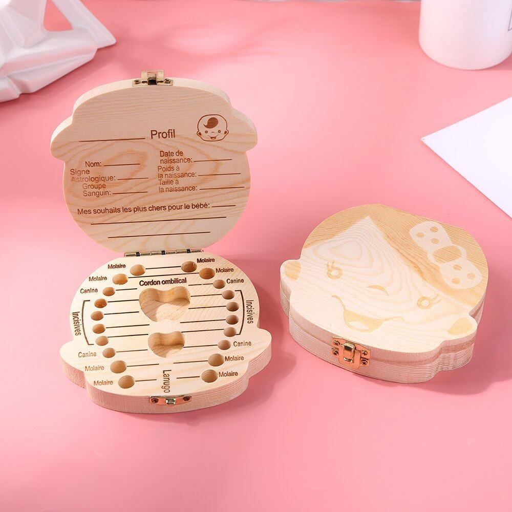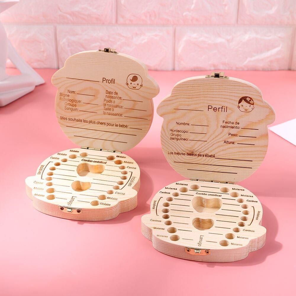 Do pudełeczka możesz schować nie tylko ząbki, ale również na przykład pierwszy włos. W pudełeczku można także bezpośrednio zapisać dane osobowe dziecka – imię, datę urodzenia itp. Pudełeczka są dostępne w wersji dla dziewczynek i chłopców i wykonane są z pachnącego drewna.