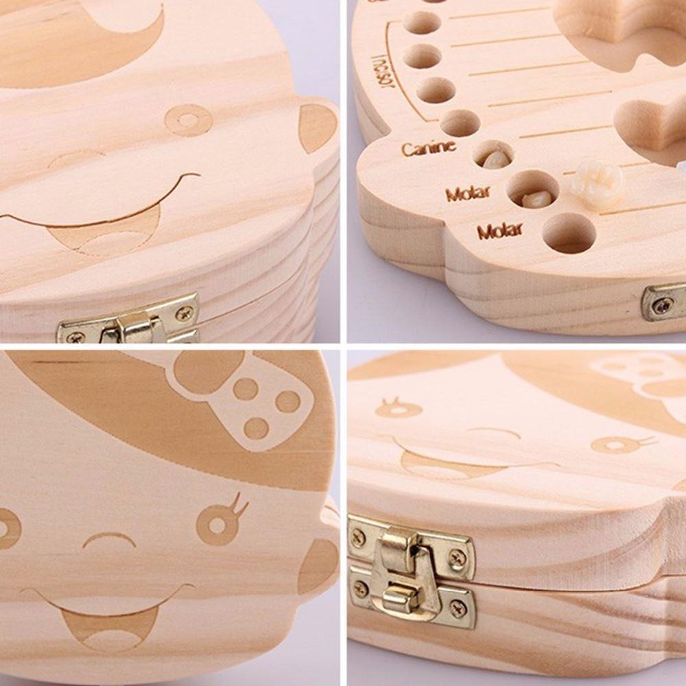 Wesołe drewniane pudełeczko to urocza skrytka na przechowywanie dziecięcych skarbów. W końcu nie każdy z nas pamięta swój pierwszy wypadnięty ząbek ani który to był. Dzięki temu pudełeczku możesz przechować mleczne ząbki swojego dziecka, a gdy podrośnie, pokazać mu te bezcenne pamiątki i może wspomnieć jakąś zabawną historię.