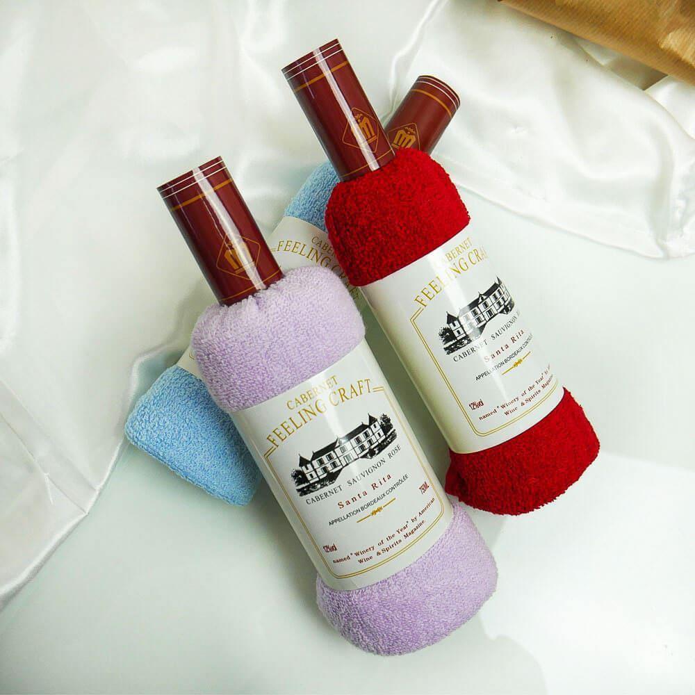 Znasz kogoś, kto jest miłośnikiem wina? Dlaczego nie sprawić takiej osobie zabawnego prezentu w formie ręcznika ułożonego jak butelka wina? Materiał jest bardzo przyjemny w dotyku. Przyda się w każdym domu jako ręcznik do rąk.