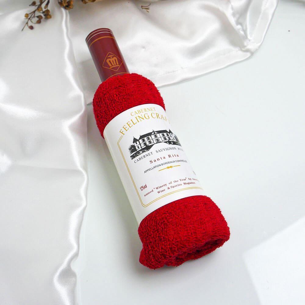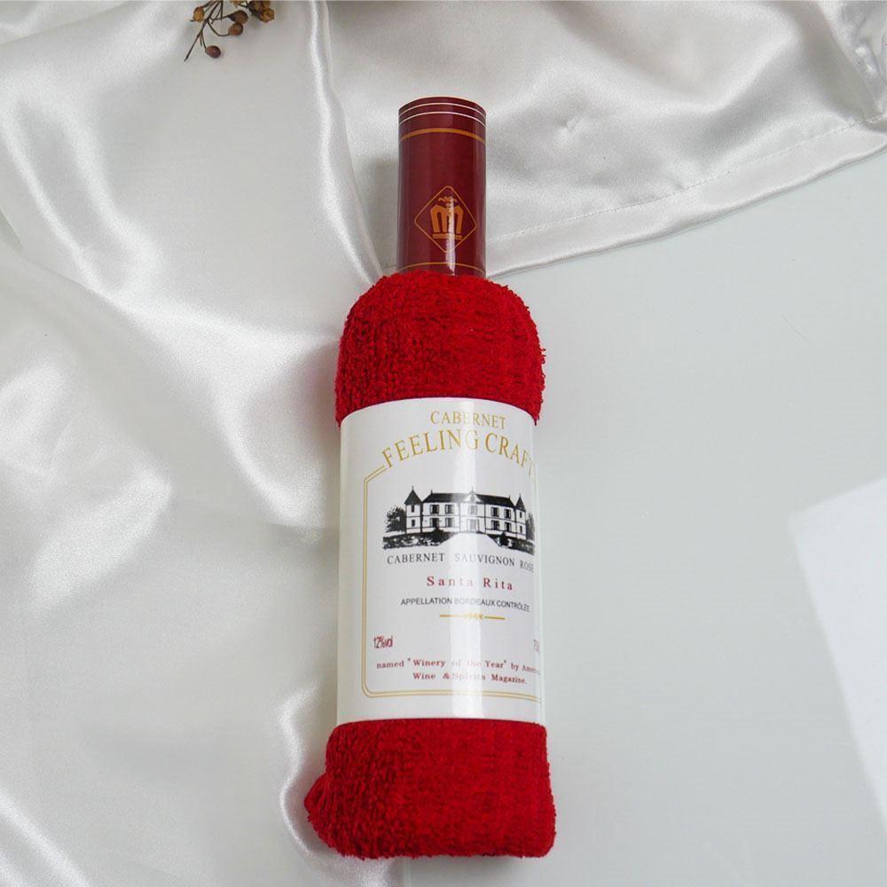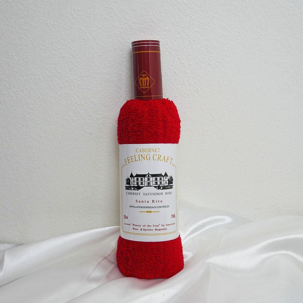 Ręcznik w opakowaniu upominkowym w kształcie butelki wina - czerwony