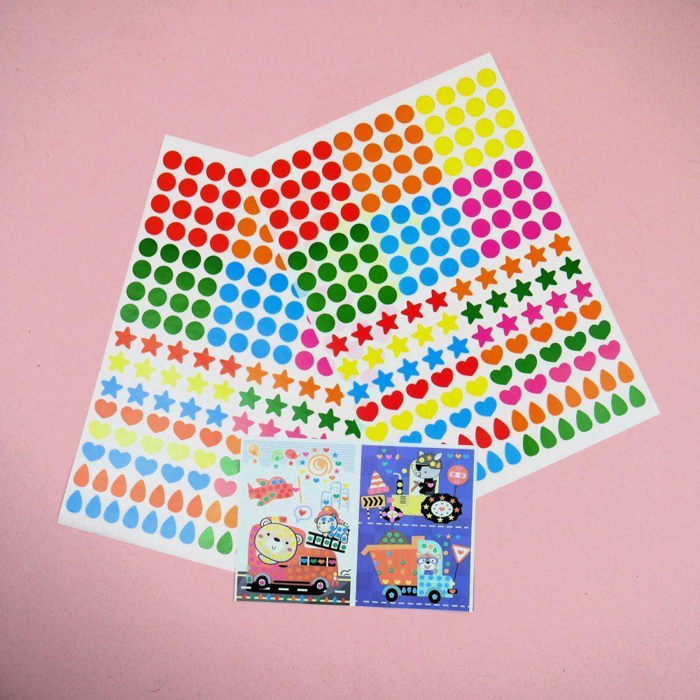 • 1× zestaw naklejek w kształcie kółek, serc, gwiazdek i kropelek