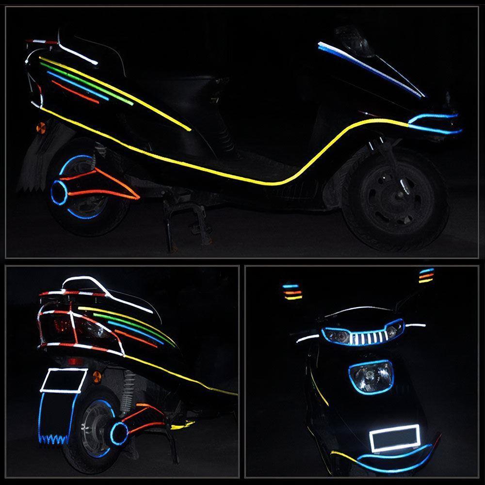 Niezbędny dodatek dla wszystkich rowerzystów, motocyklistów i rodziców z wózkami dziecięcymi, którzy chcą zwiększyć swoją widoczność i bezpieczeństwo na drodze po zmroku. Wykonany jest z wodoodpornego materiału, co zapewnia długą trwałość. O długości 5 metrów, pozwala łatwo pokryć różne części swojego pojazdu lub wózka.