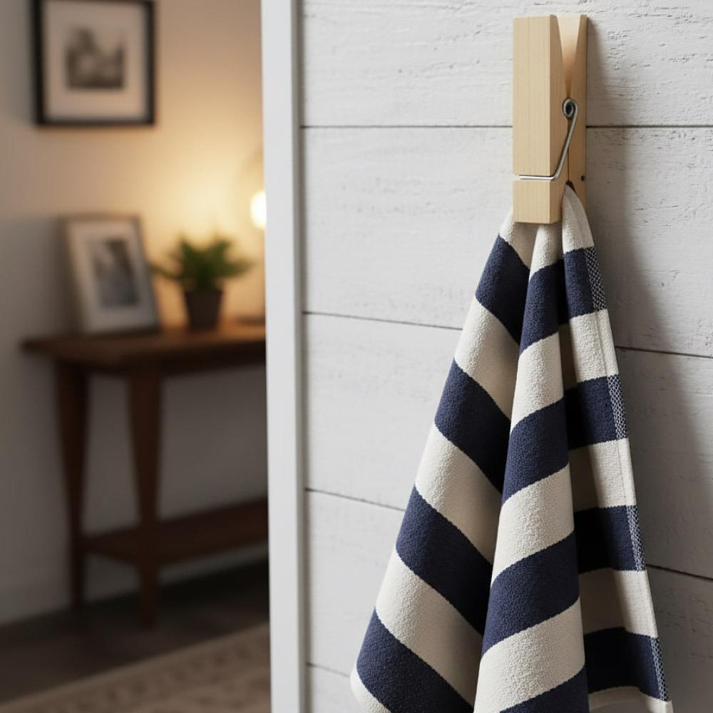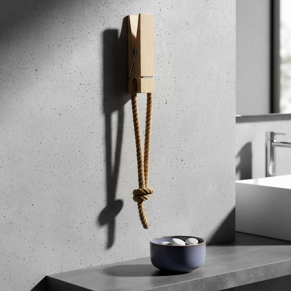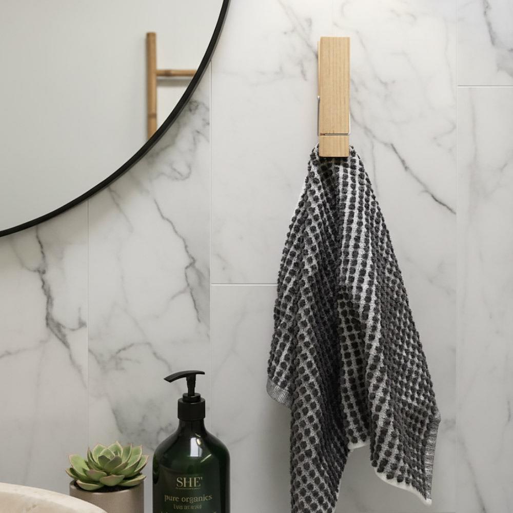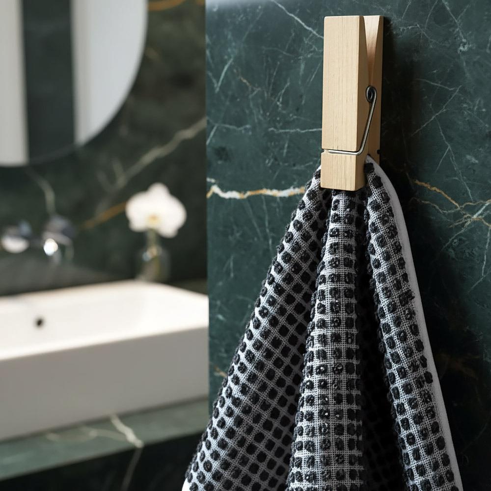 Haczyki i łazienka. Z pozoru zwyczajne połączenie, nad którym zwykle się nie zastanawiamy – przecież ręczniki odkładamy na haczyki czy wieszaki na co dzień. Na co dzień jednak również się denerwujemy, gdy znajdujemy ręcznik razem z haczykiem na podłodze, bo znów spadł, albo gdy ręcznik zsunie się z jakiegoś wieszaka lub drążka. Co z tym zrobić? Rozwiązaniem może być ten uchwyt w kształcie klamerki! Bo co najlepiej trzyma ubrania – a więc i ręcznik? (Nie)zwyczajna klamerka!