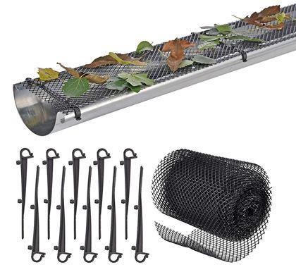 Ochronna siatka do rynny nie przepuszcza żadnych liści ani innych zanieczyszczeń do wnętrza rynny, zapewniając, że łatwo będzie przepływać przez nią tylko czysta woda. Siatkę mocuje się w rynnach za pomocą specjalnych uchwytów, które są częścią zestawu. Szerokość i długość siatki oraz uchwytów można indywidualnie dostosować, dzięki czemu można ją stosować również do rynien o różnej szerokości. Instalacja jest bardzo prosta i przy odrobinie sprytu siatkę można zamontować samodzielnie.