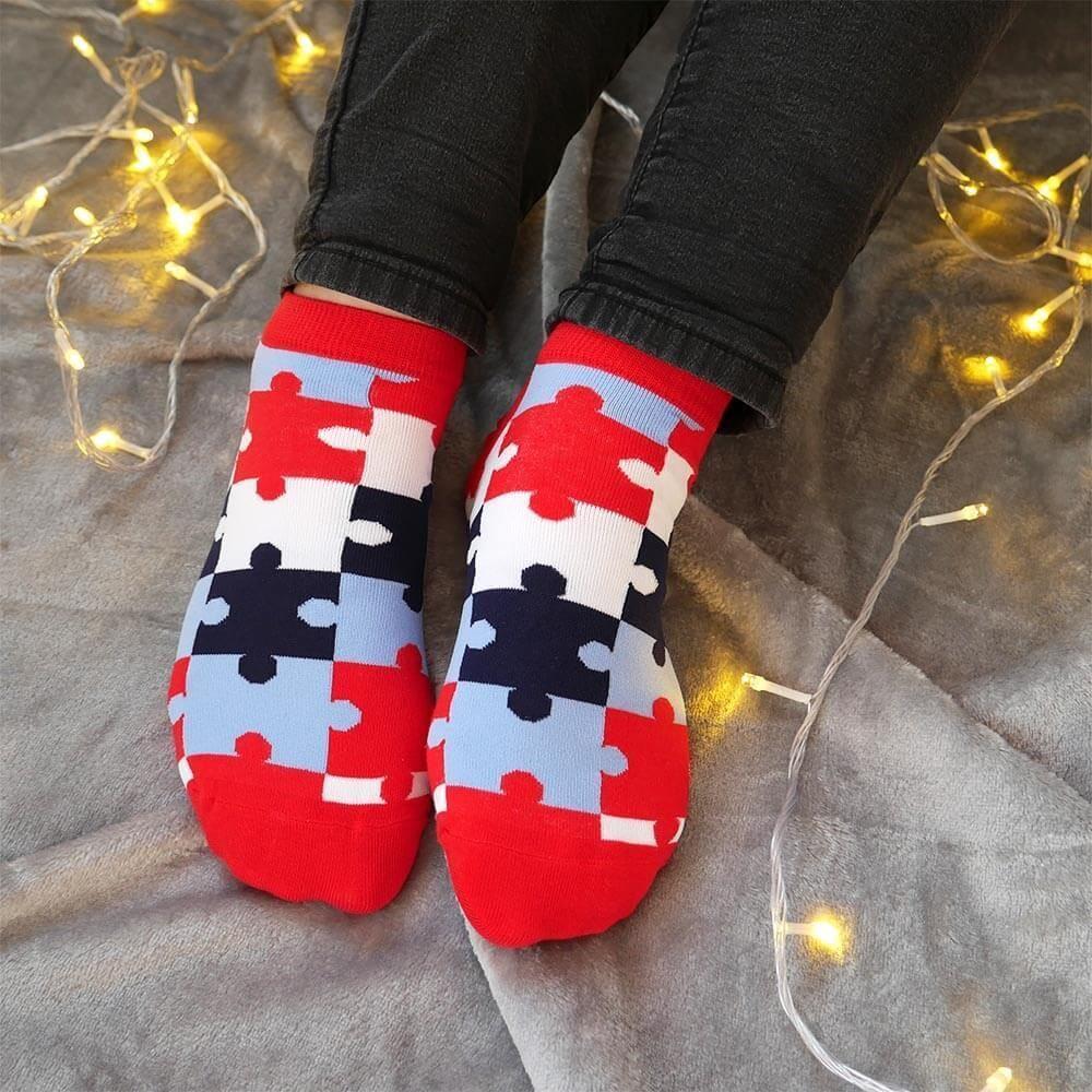 Ubierz się stylowo! Wesołe skarpetki ożywią każdą nudną stylizację i rozbawią zarówno Ciebie, jak i Twoje otoczenie. Dzięki krojowi do kostki można je wygodnie nosić zarówno w tenisówkach, jak i półbutach. Wybierz się więc na wykład do szkoły lub do pracy i pokaż wszystkim swój niepowtarzalny styl! Po prostu bądź kolorowy i radosny jak Twoje skarpetki.
