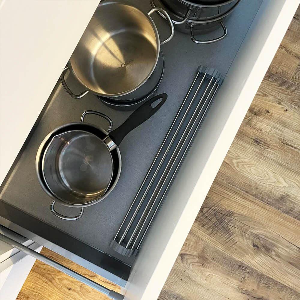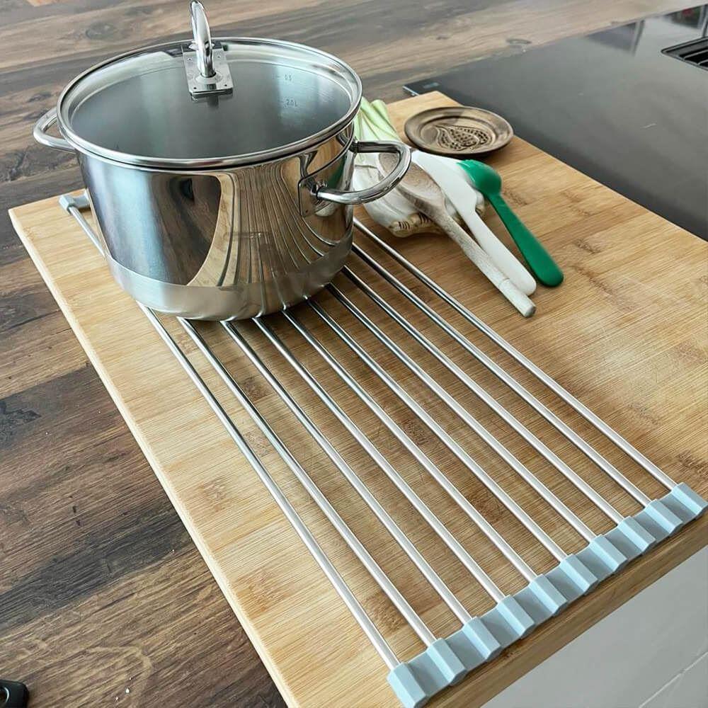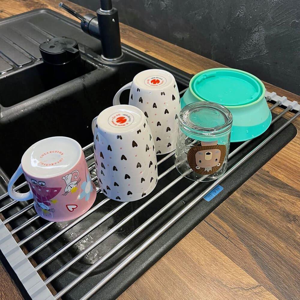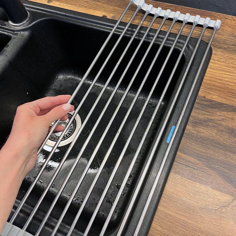 Ociekaczka jest łatwa do rozkładania i składania. Do jej użycia nie potrzebujesz żadnych narzędzi – wystarczy rozłożyć i położyć na zlewie. Po użyciu możesz ją zwinąć w rulon i schować gdziekolwiek zechcesz. Zajmuje minimalną ilość miejsca i zawsze możesz mieć ją pod ręką.