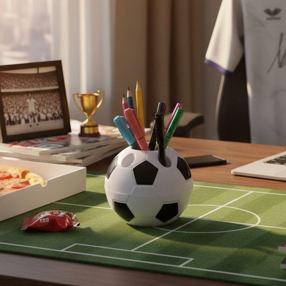 Stylowy organizer w kształcie piłki nożnej, który zaprowadzi porządek na każdym biurku.