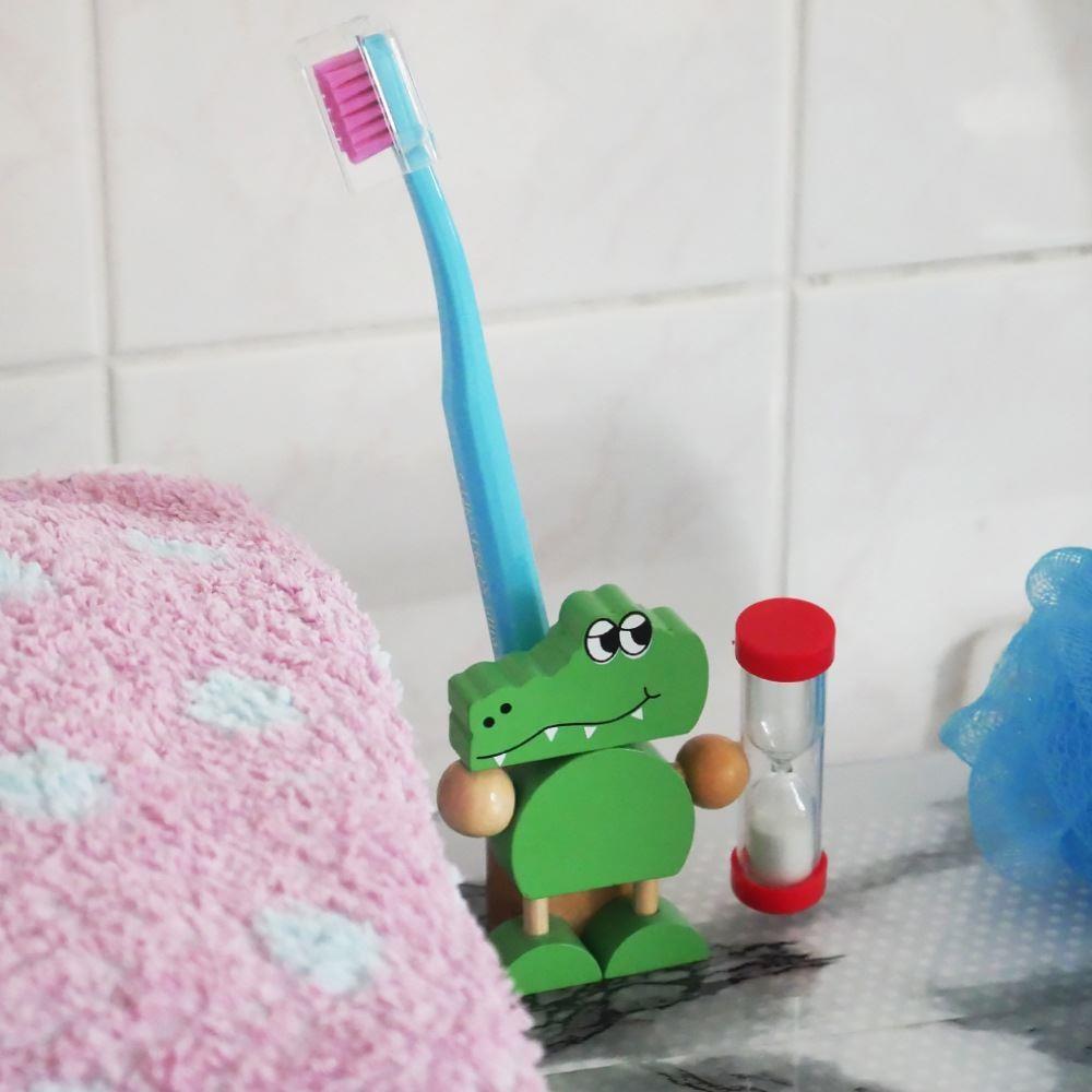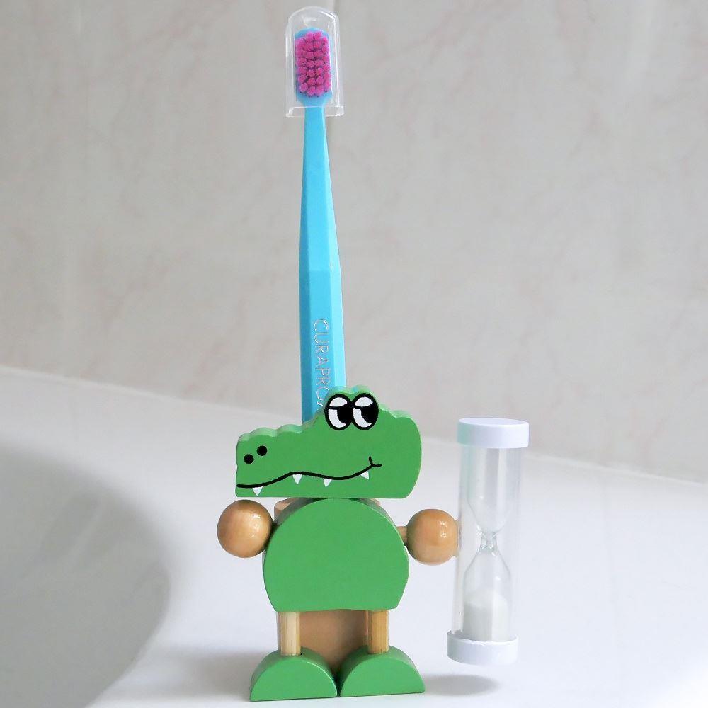 Z tą magiczną krokodylką, która do pomocy wzięła sobie klepsydrę, mycie ząbków stanie się codzienną, fajną rutyną. Za pierwszym razem może się wydawać, że piasek przesypuje się bardzo wolno, ale dzieci szybko się przyzwyczają i zanim się obejrzą, będą miały gotowe superczyste ząbki.