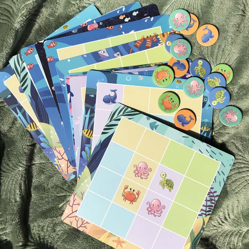 Skończyły wam się pomysły, jak zająć dzieci lub co im sprezentować? Wypróbujcie tę nowość – zabawna gra sudoku. Gra jest dostosowana specjalnie dla dzieci, tak aby mogły ją zrozumieć i dobrze się bawić. Sudoku zawiera w sumie 15 papierowych szablonów, a każda strona oferuje wariant gry, co daje w sumie 30 wzorców. Dodatkowo zestaw zawiera elementy z motywami morskich zwierzątek. Szablony i elementy umieszczone są w metalowym pudełku. Wszystko jest więc ładnie zorganizowane. Dzięki tej grze łączy się zabawę i naukę. Dzieci rozwijają małą motorykę, angażują logiczne myślenie i rozumowanie, ćwiczą cierpliwość i koncentrację.