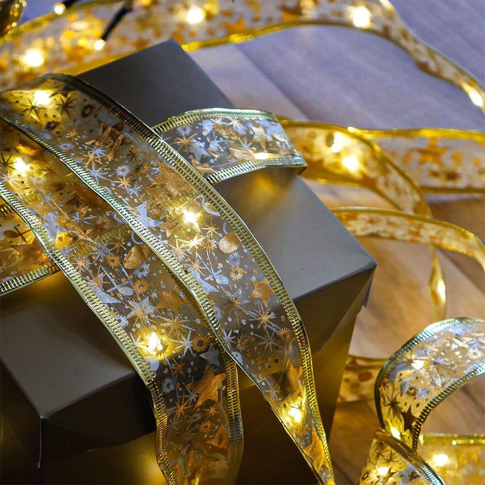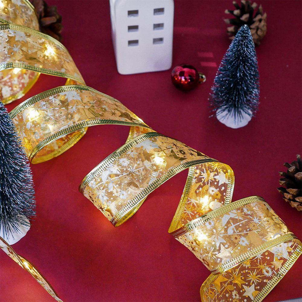 Jeśli szukasz czegoś, co ożywi Twoje świąteczne dekoracje, świecąca wstążka bożonarodzeniowa będzie idealnym wyborem dla Ciebie! Wstążka świeci ciepłym światłem, dzięki czemu wprowadza przytulną atmosferę do wnętrza. Świecąca wstążka świąteczna jest prosta i wygodna w użyciu. Możesz owinąć ją wokół choinki lub zawiesić na oknie.