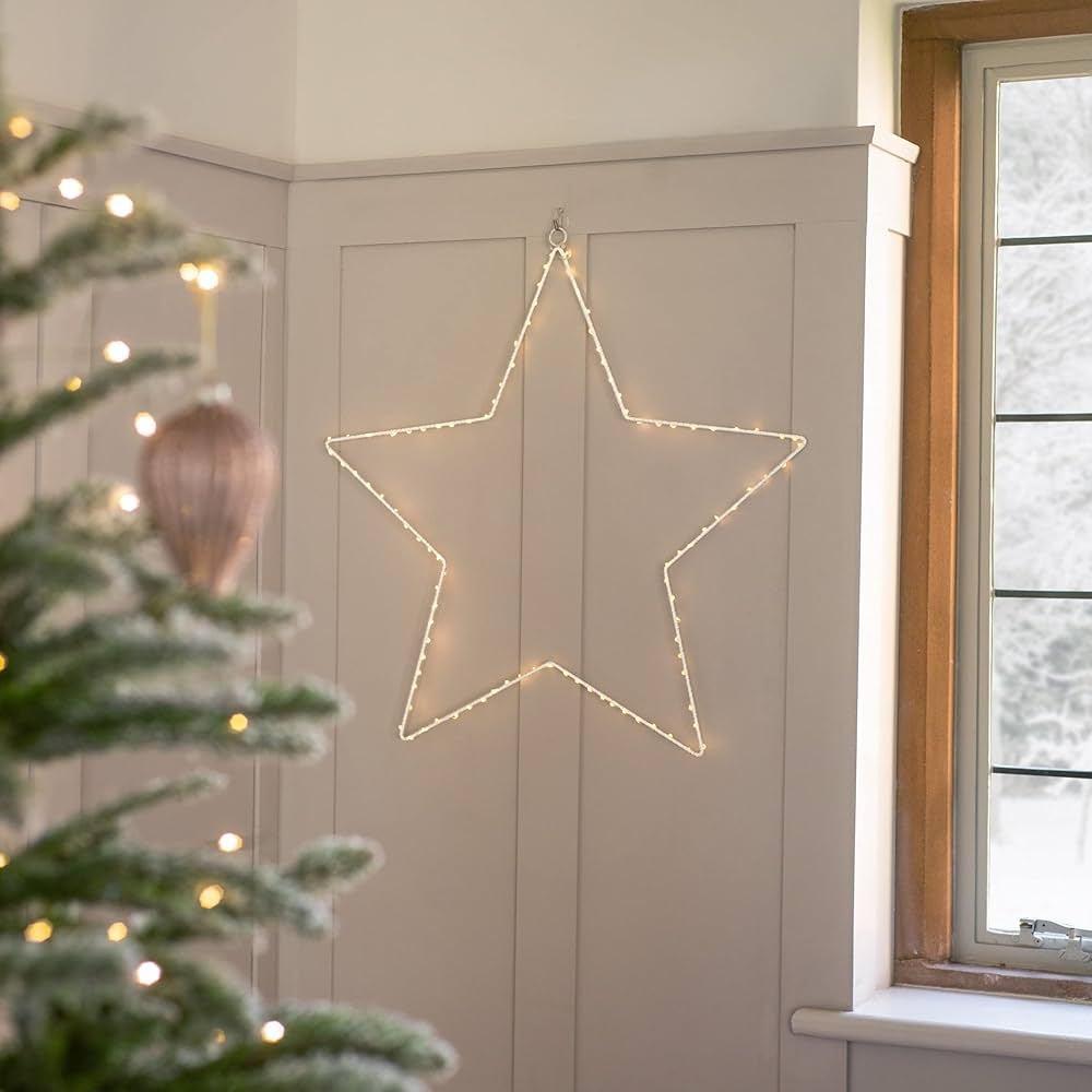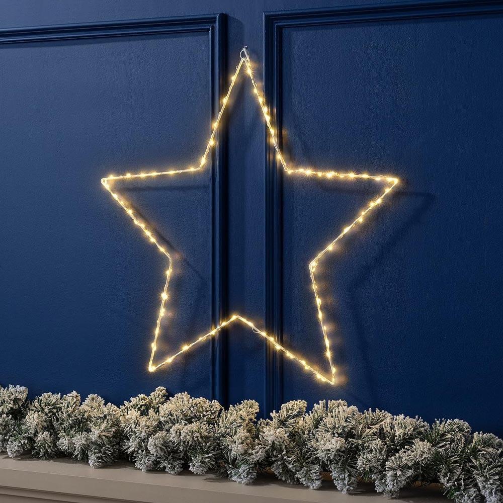 Dodaj swojemu domowi magiczną świąteczną atmosferę dzięki tej eleganckiej LED dekoracji w kształcie gwiazdy. Delikatne ciepłe światło nadaje poczucie przytulności i świątecznego nastroju, niezależnie od tego, czy zawiesisz ją w oknie, na ścianie, czy postawisz na półce. Minimalistyczna metalowa rama w połączeniu z delikatnymi diodami LED tworzy imponujący efekt również z zewnątrz, a jednocześnie nie jest nachalna. Idealny wybór dla tych, którzy szukają stylowej, a jednocześnie subtelnej świątecznej dekoracji. Ta świąteczna dekoracja zamieni każde okno w bajkowy krajobraz.